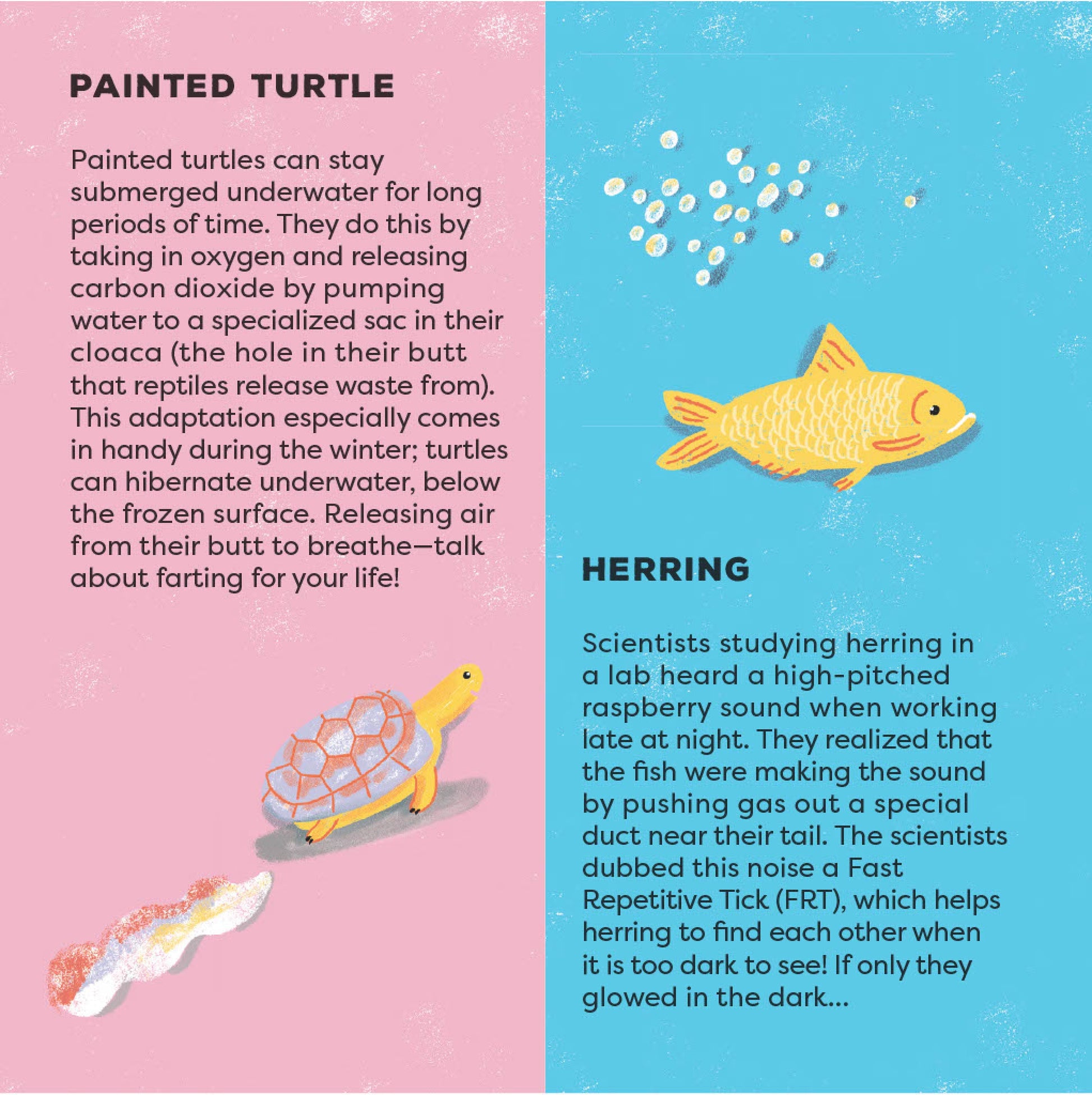 FUN FACTS about animals and how they pass gas in the accompanying booklet