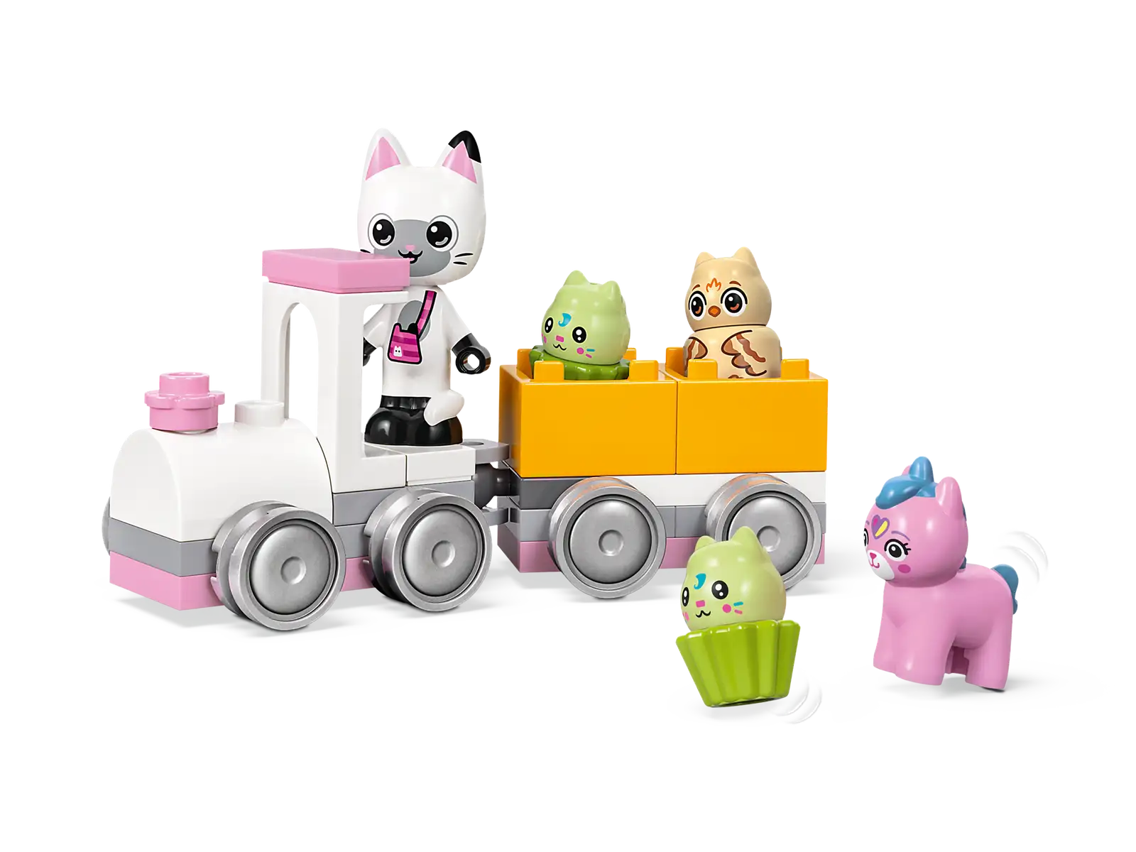 Gabby’s Kitty Care Ear (10796) is a pet pretend-play and developmental toy for 4+ year old fans of DreamWorks Animation’s Gabby’s Dollhouse. This preschool toy for girls and boys is a great way to build confidence, improve concentration and develop problem-solving skills while having lots of role-play fun! If you’re looking for a gift for a preschooler who loves caring for animals, this dollhouse playset is the kids’ entertainment toy for you. It includes a Gabby mini-doll and Pandy Paws, Baby Kittycorn, Baby Me-Owl and 4 Baby Cupcake figures. The playset comes with a swing, slide, toy train and a 4-seat cupcake-tin stroller.