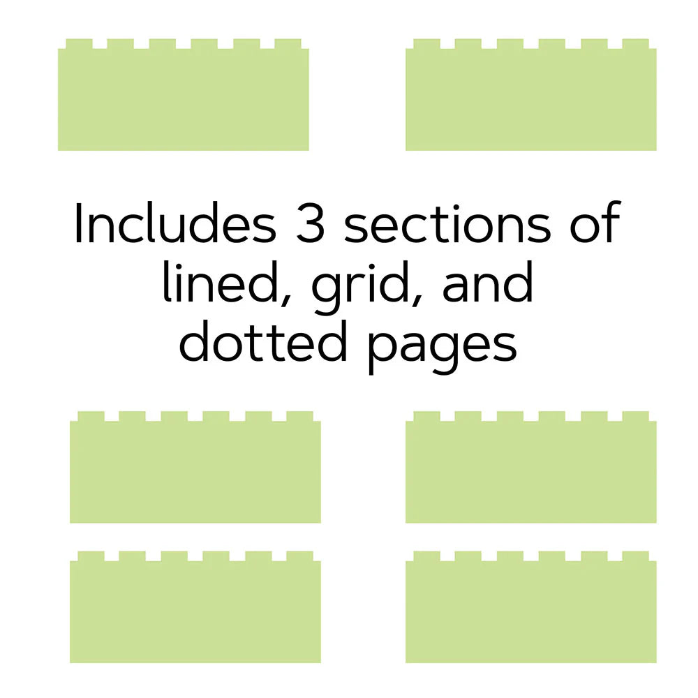 The LEGO® Master Builder Notebook is the perfect place to write, sketch, plan, and dream up new ideas on your journey to becoming a Master Builder! With three unique sections of lined, grid, and dotted pages, there is plenty of room for all of your important notes and drawings.