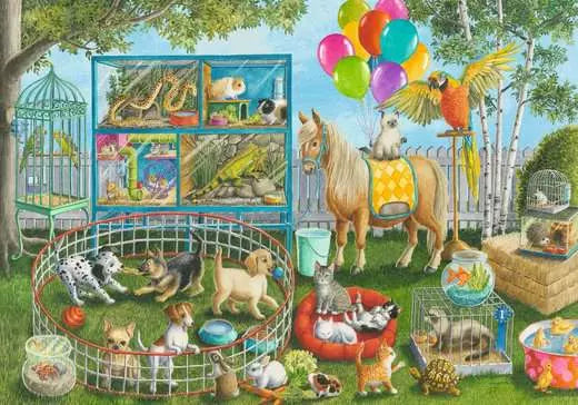 Join the neighborhood party in Ravensburger's "Pet Fair Fun" puzzle!