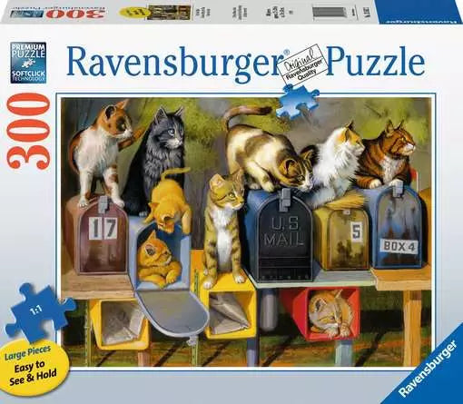 Waiting for the mail to come never looked so sweet! Ravensburger's “Cat's Got Mail” puzzle is sure to bring a smile to any feline-fancier's face!