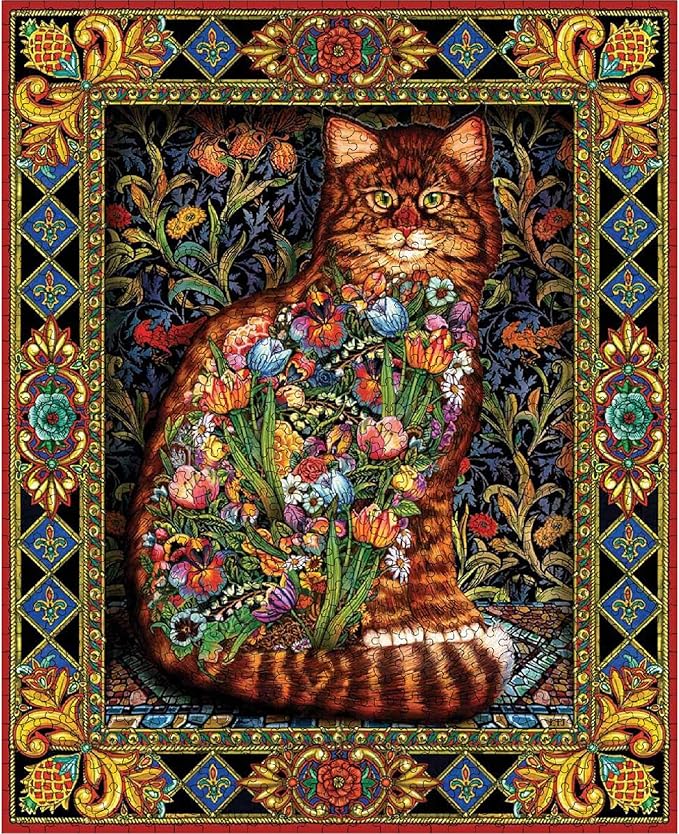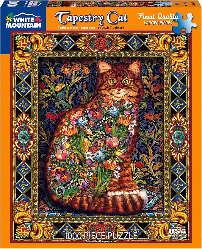 Lots of wonderful surprises can be found in this challenging Tapestry Cat jigsaw puzzle by artist Lewis T. Johnson 1000 Piece Jigsaw Puzzle. Finished size 24" X 30".