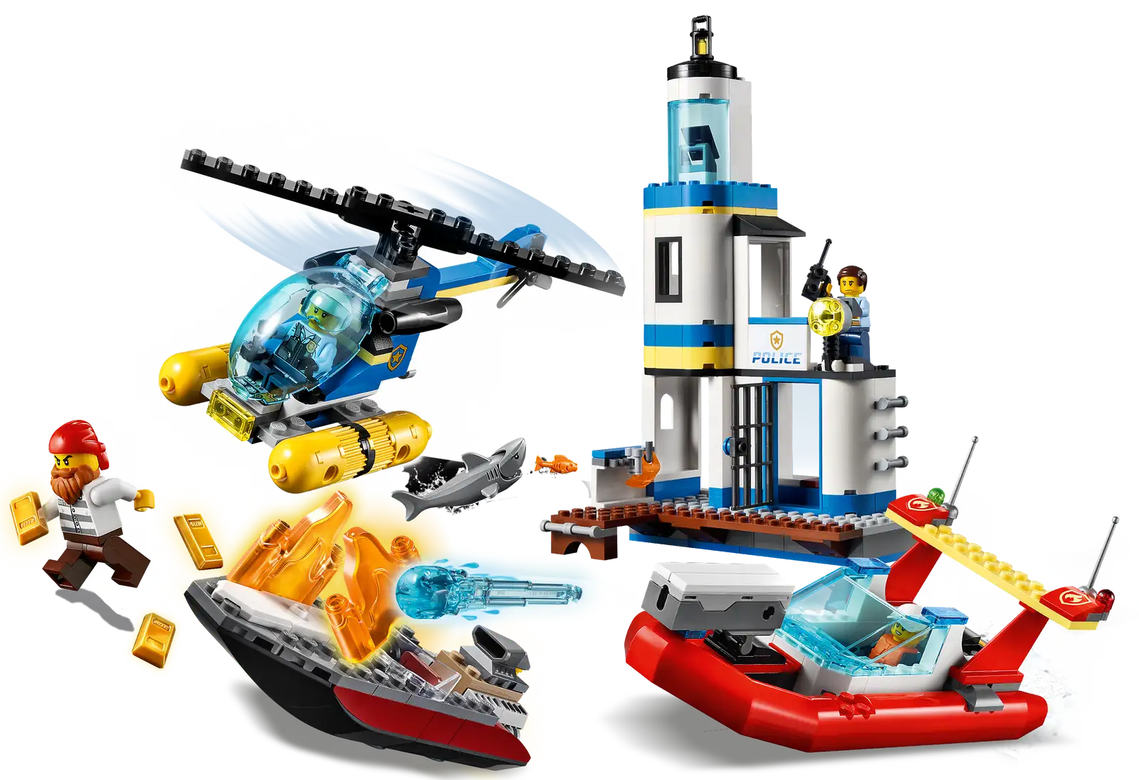 Children with a passion for action-packed role play will love the LEGO® City Seaside Police and Fire Mission (60308). This premium playset, combining 2 popular LEGO City themes, comes with a toy police station, police sea helicopter, crook’s speedboat and a fire dinghy that really floats. And to kick-start the fun, kids also get 4 minifigures including LEGO City Adventures TV series hero, Tom Bennett!