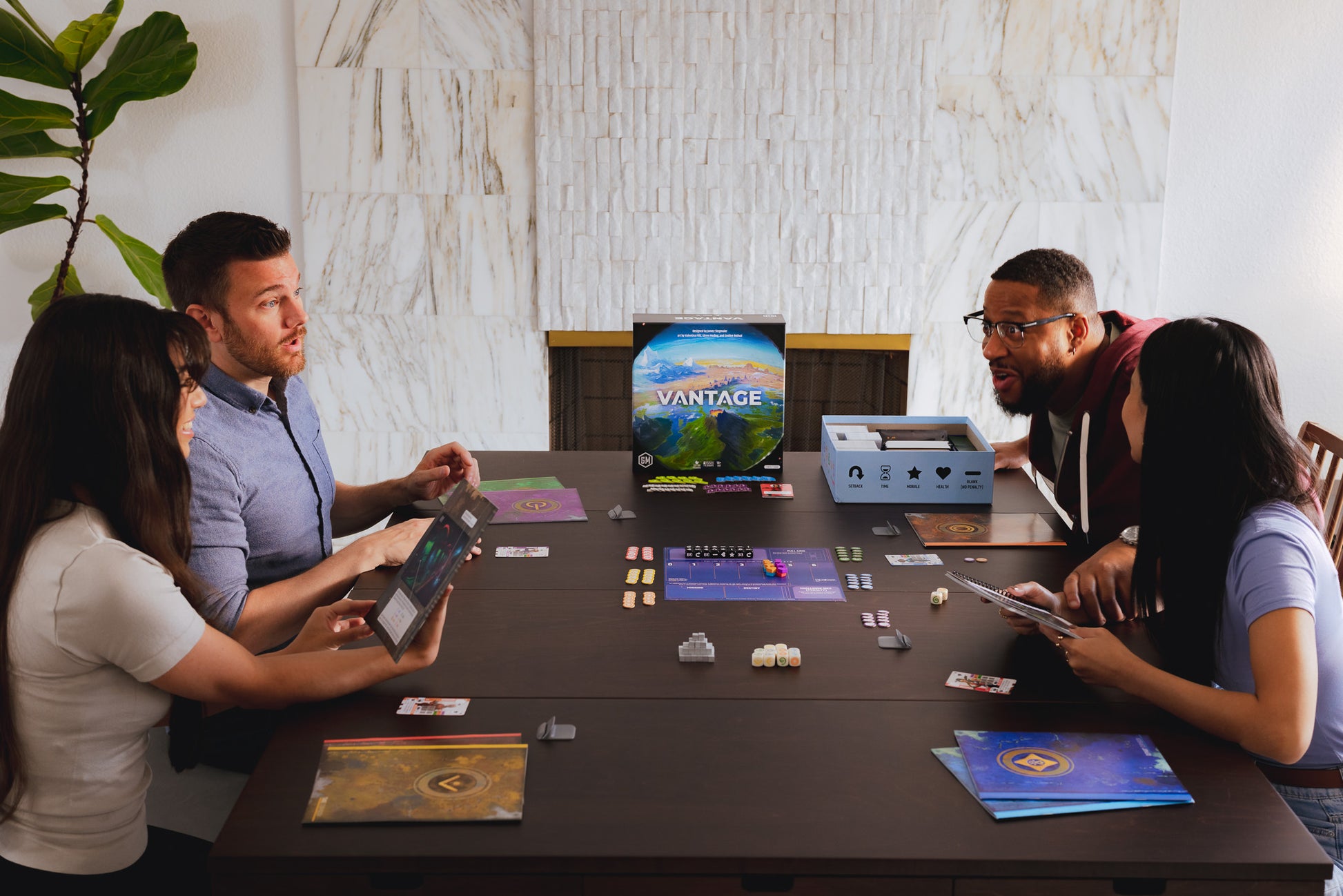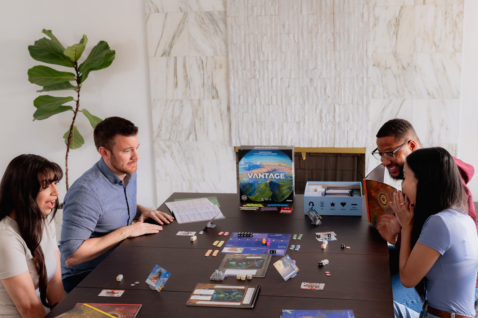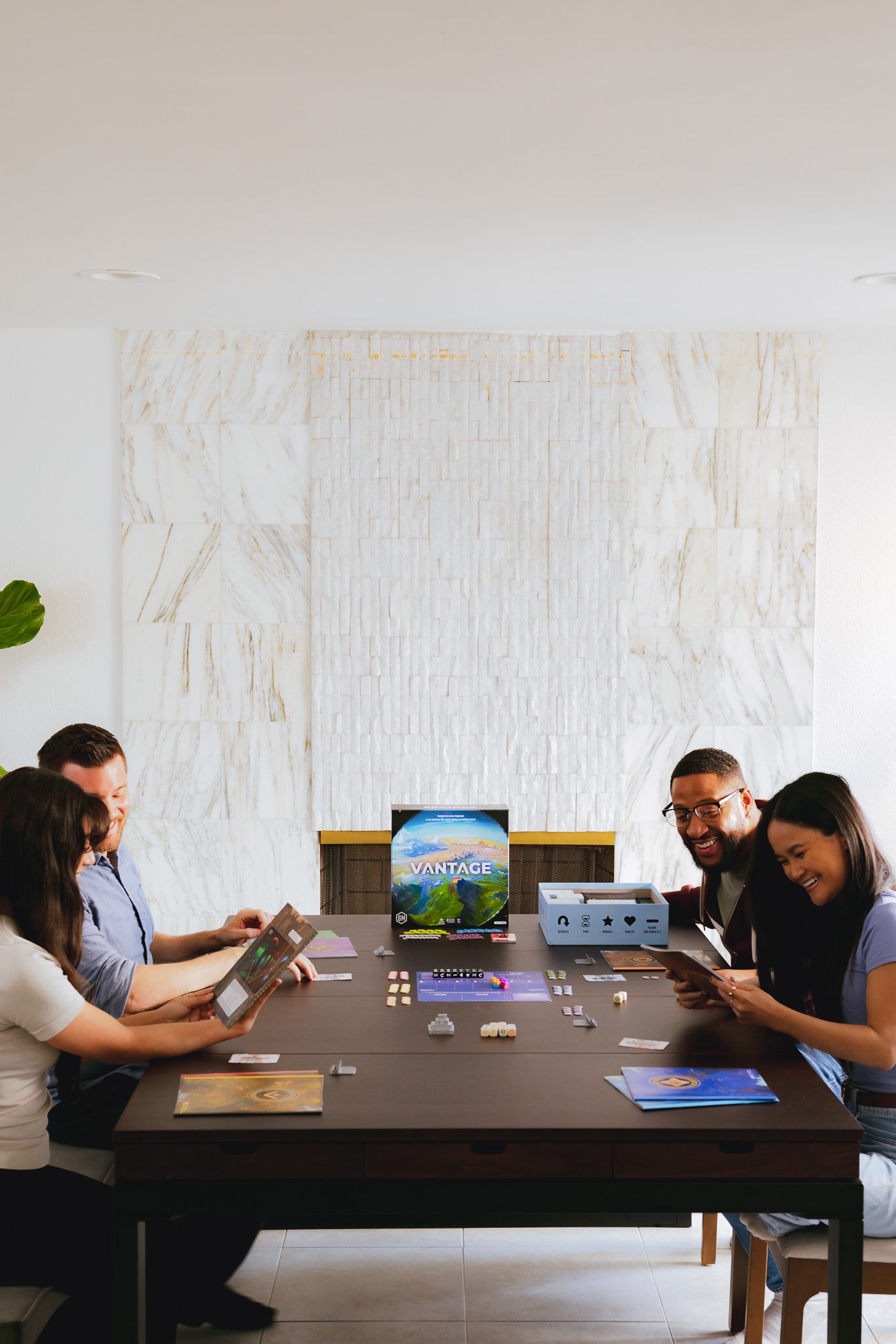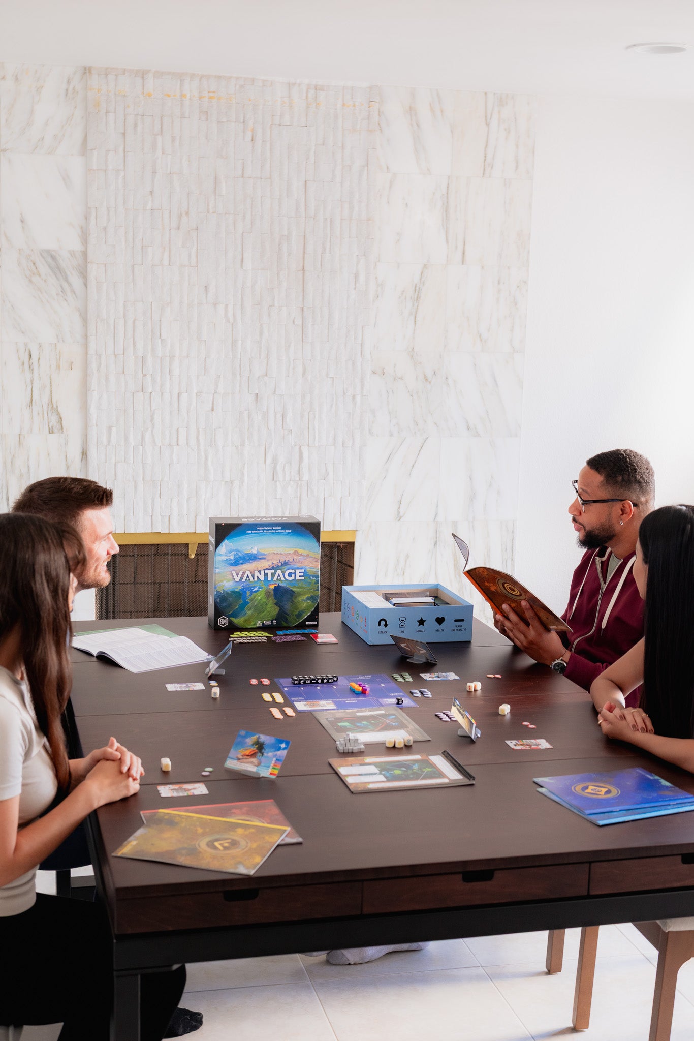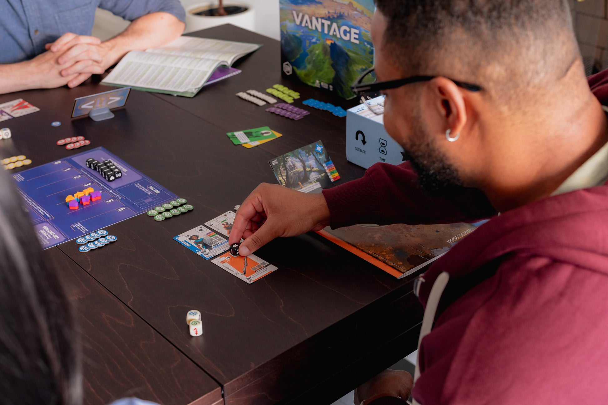 Stonemaier’s Vantage is an open-world, cooperative adventure game featuring an entire planet to explore in standalone sessions that begin with players scattered randomly across the world. With nearly 800 interconnected locations on cards and over 900 other discoverable cards, the world is your sandbox.