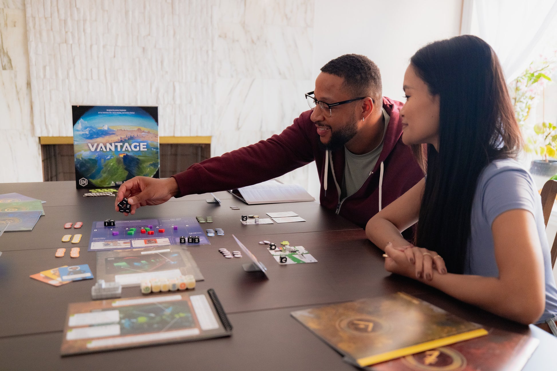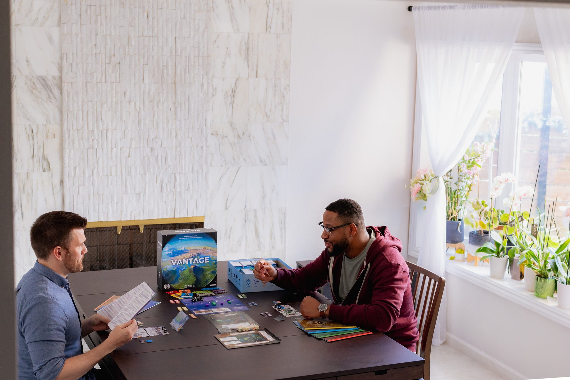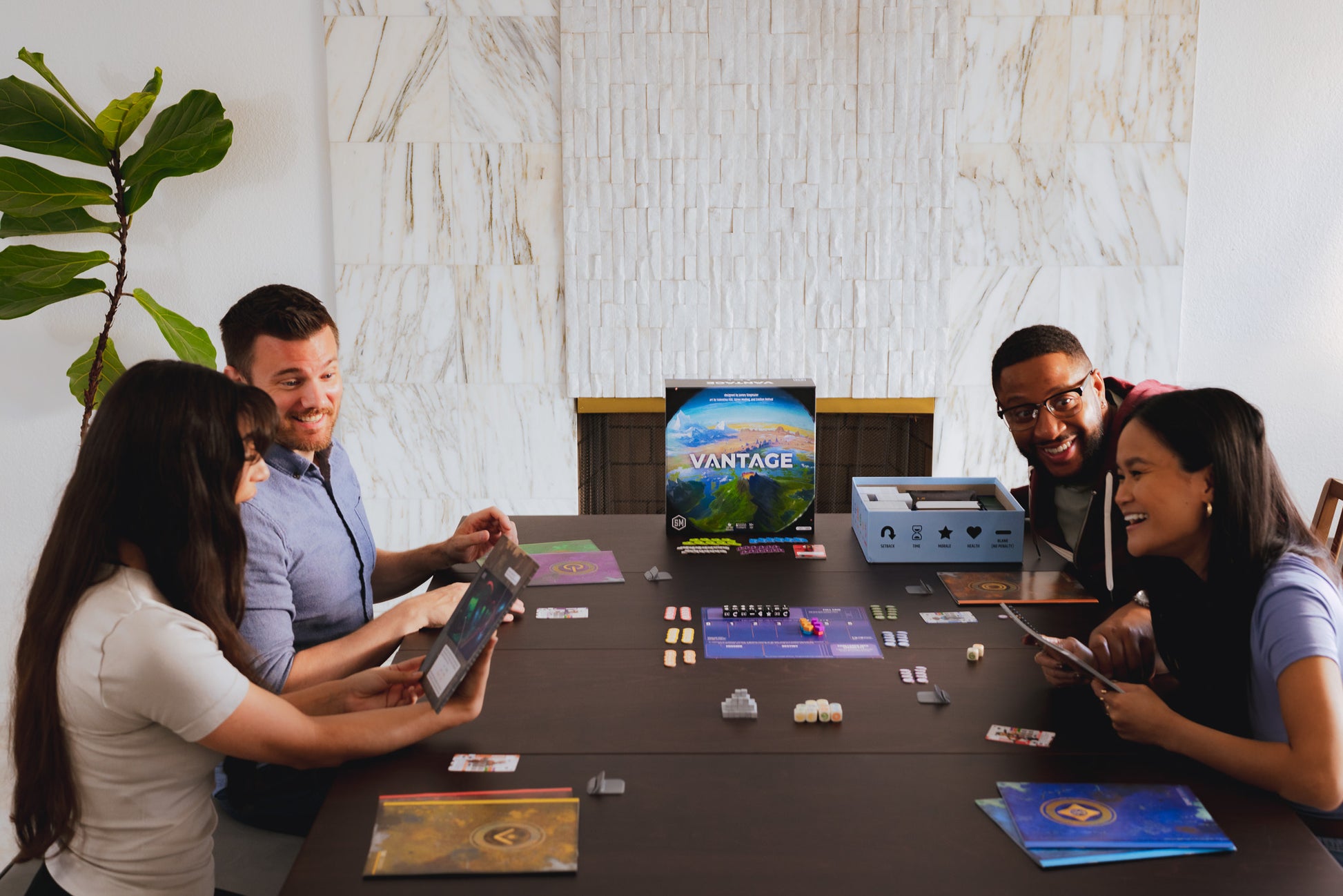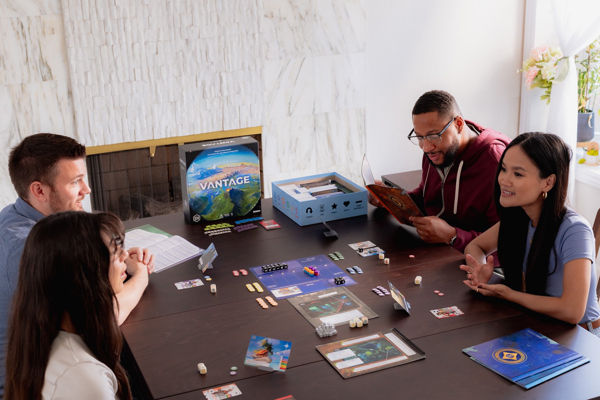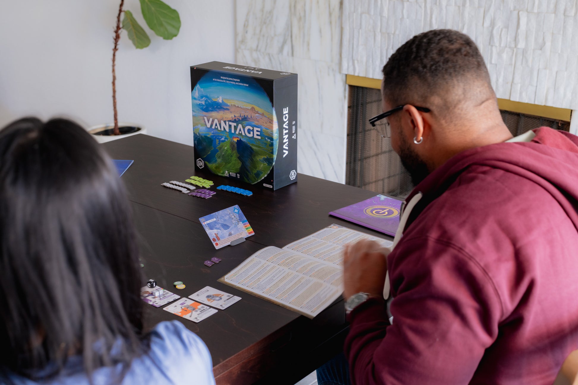 Stonemaier’s Vantage is an open-world, cooperative adventure game featuring an entire planet to explore in standalone sessions that begin with players scattered randomly across the world. With nearly 800 interconnected locations on cards and over 900 other discoverable cards, the world is your sandbox.