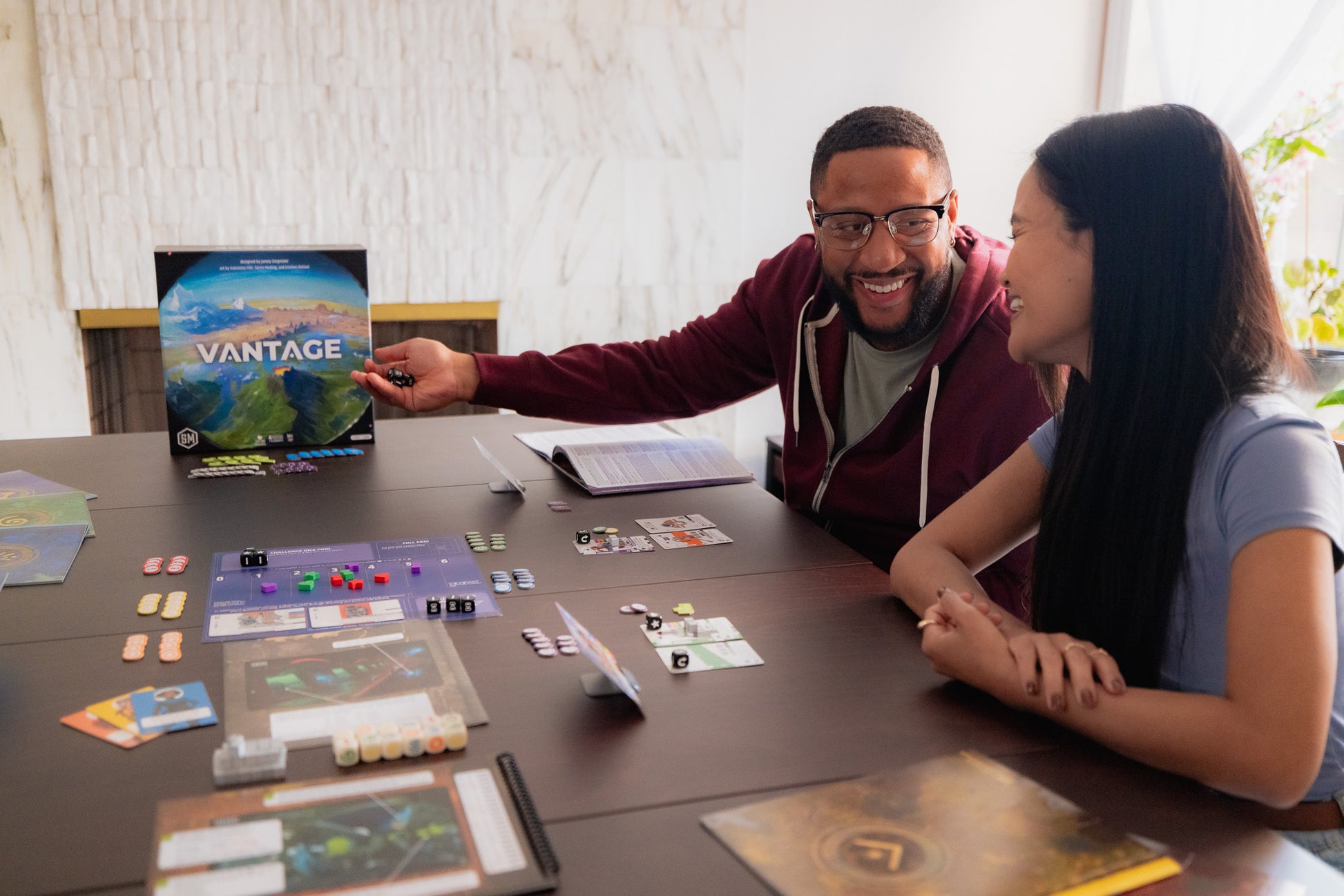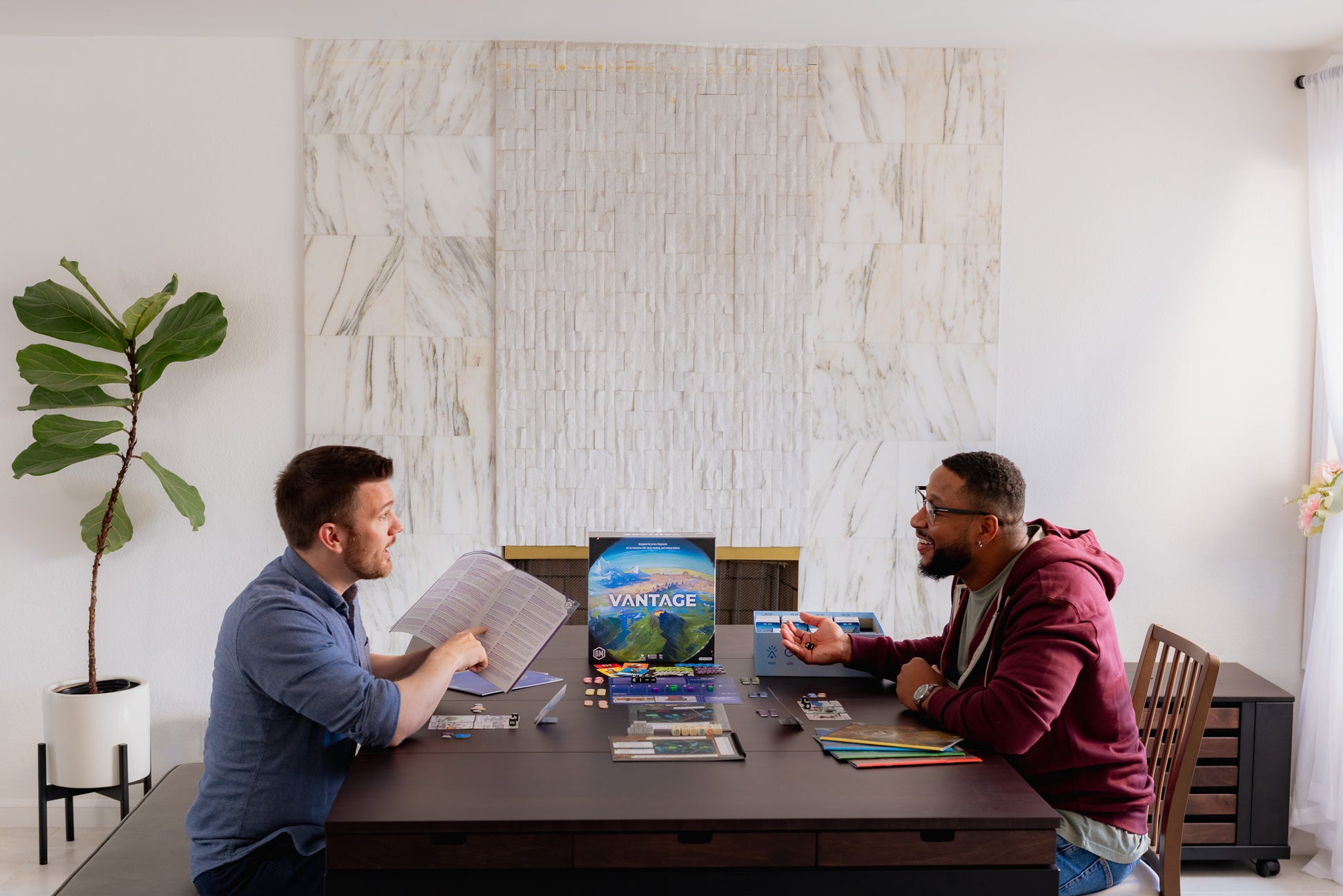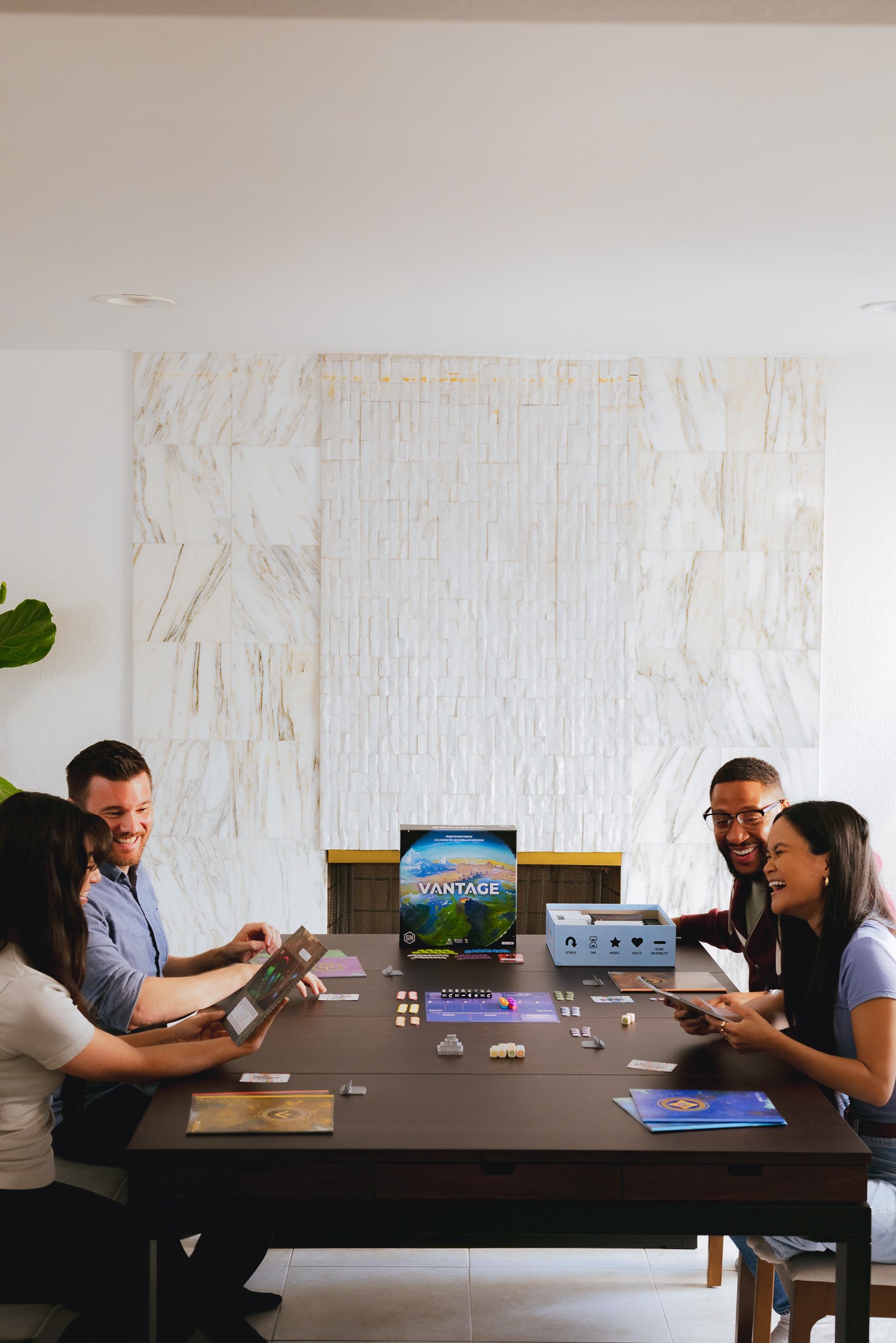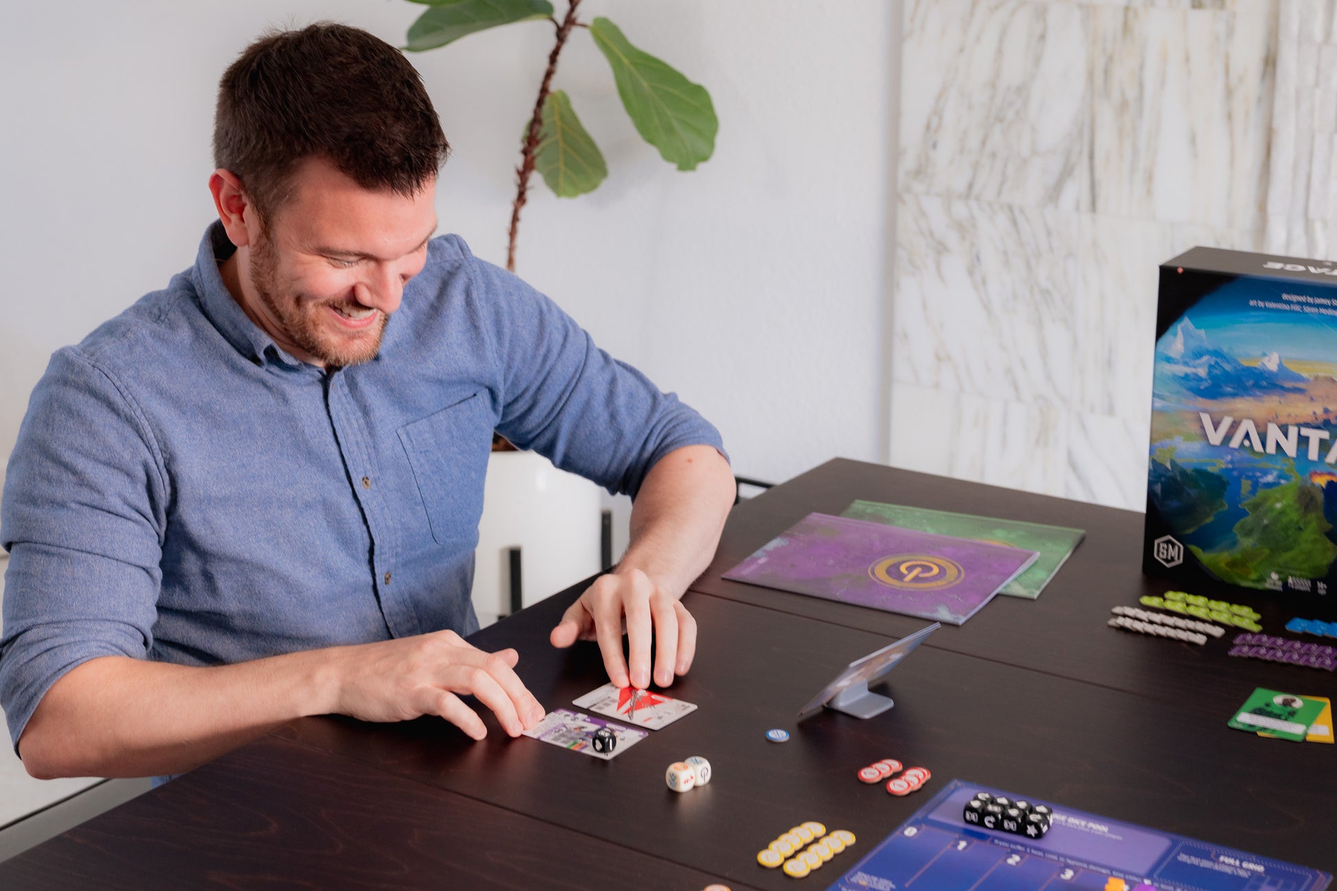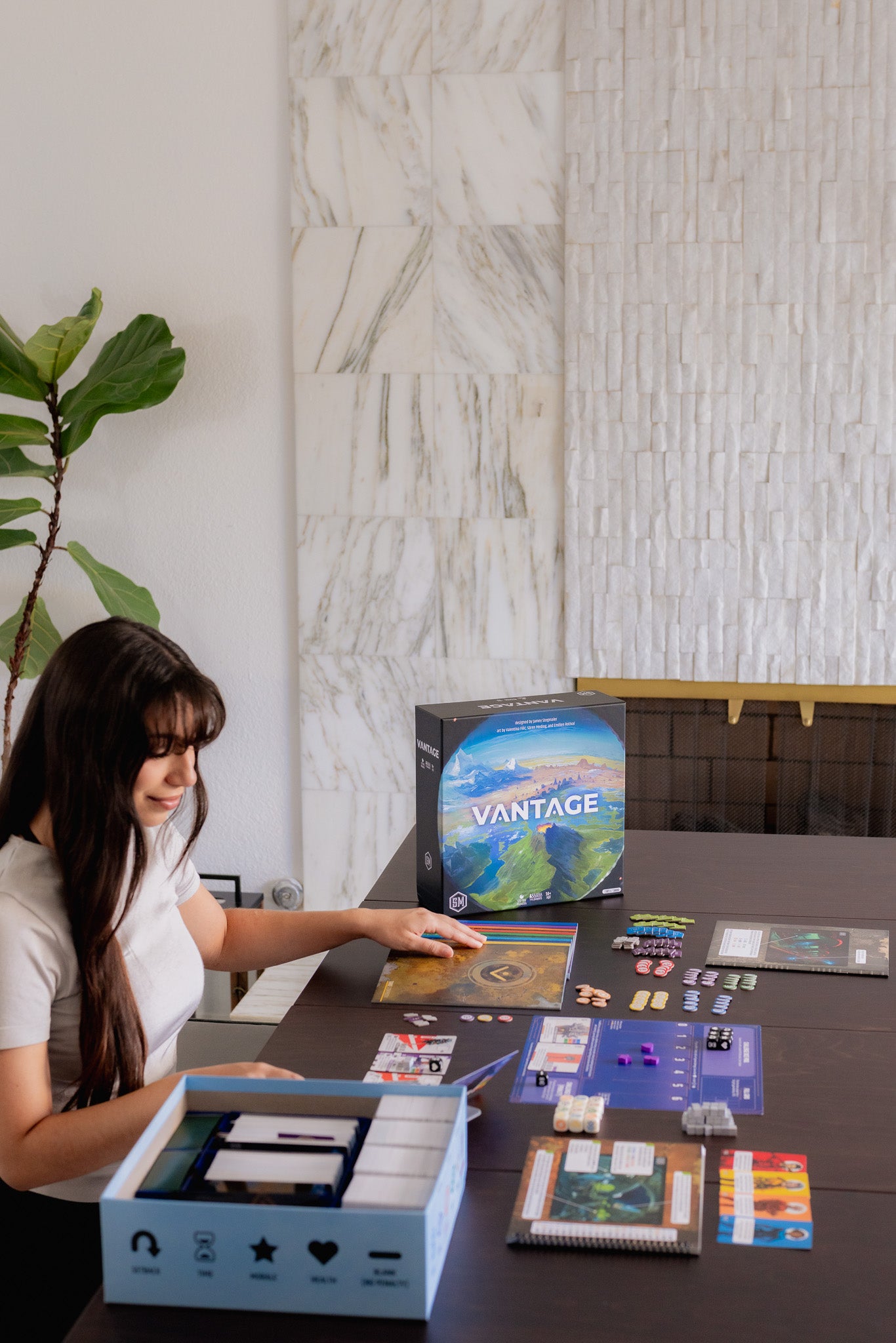 Stonemaier’s Vantage is an open-world, cooperative adventure game featuring an entire planet to explore in standalone sessions that begin with players scattered randomly across the world. With nearly 800 interconnected locations on cards and over 900 other discoverable cards, the world is your sandbox.