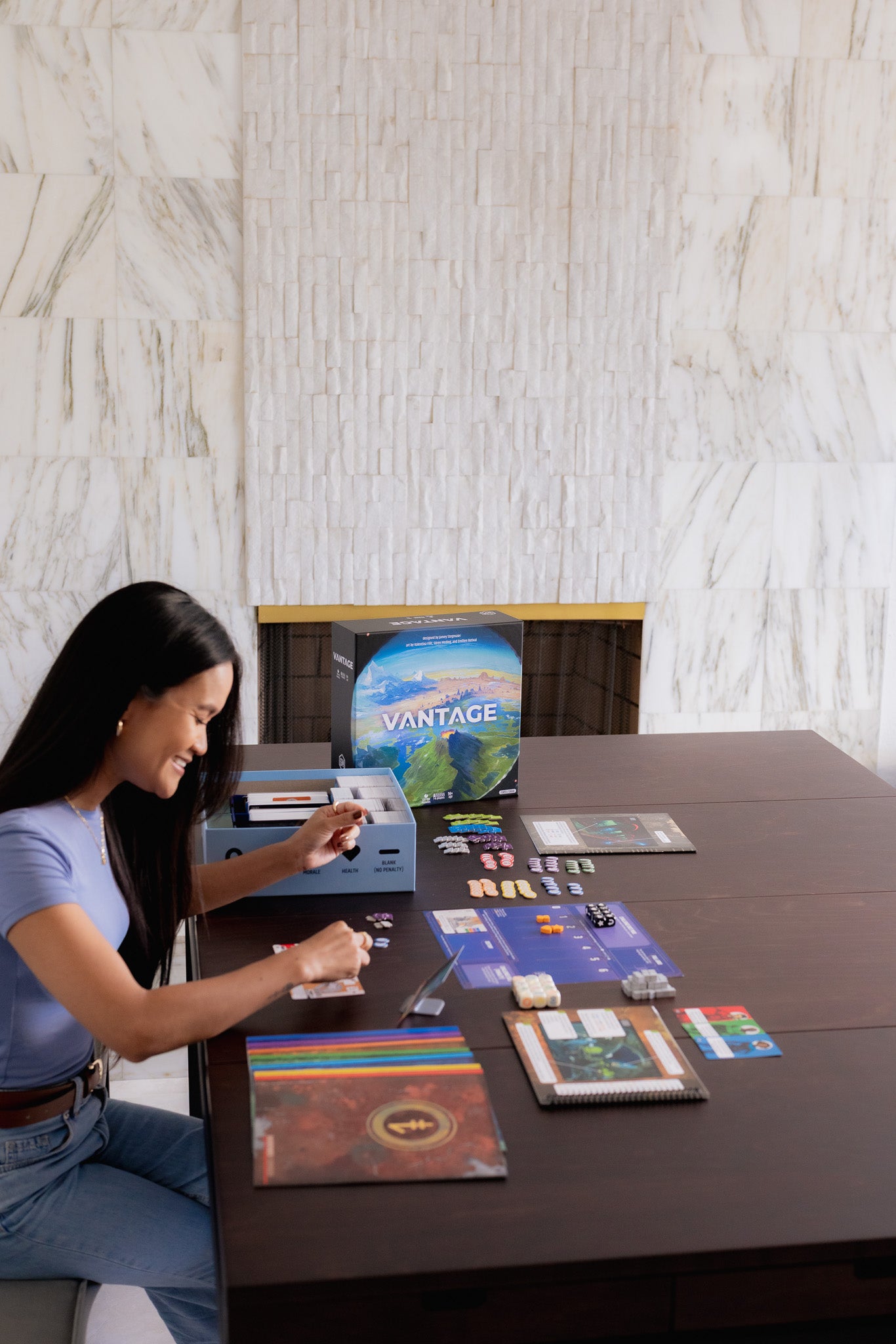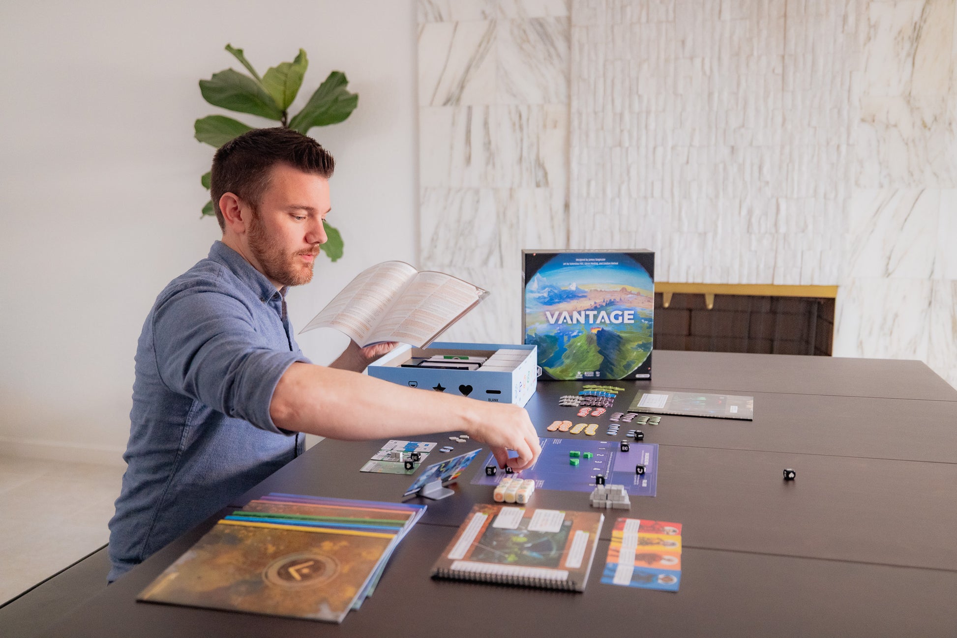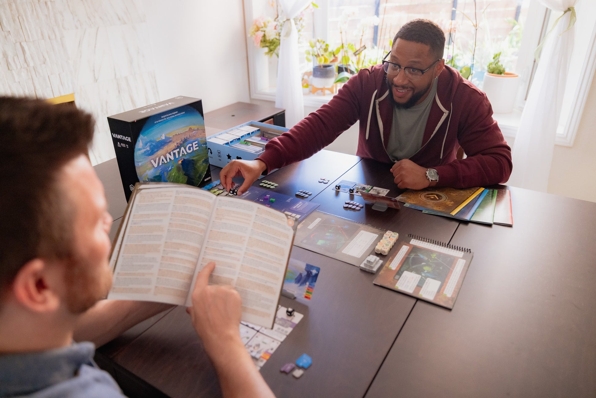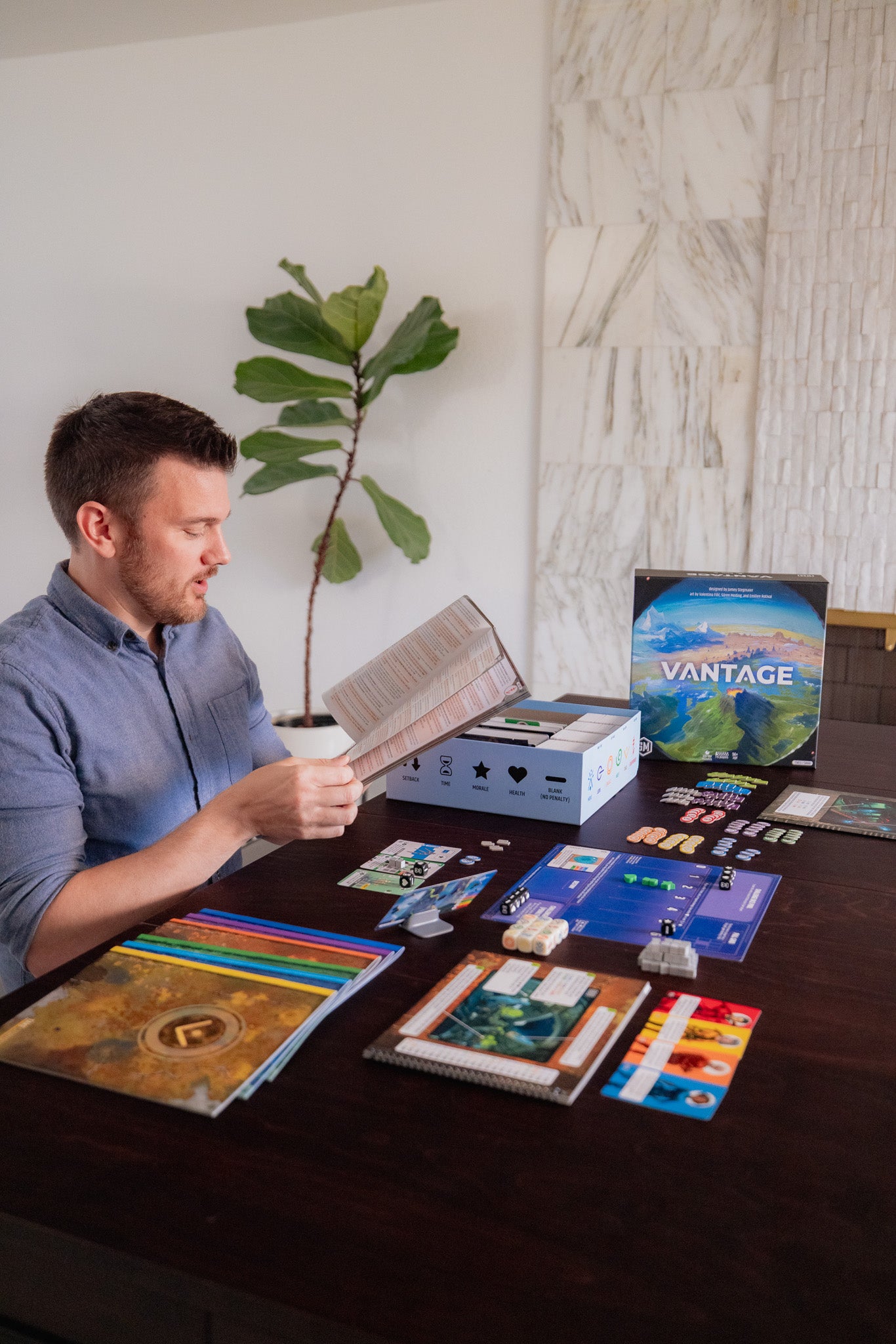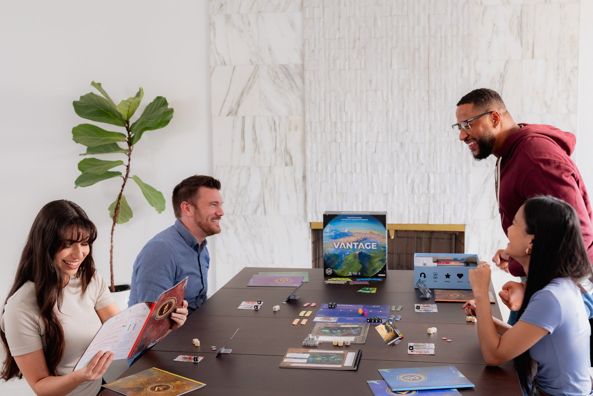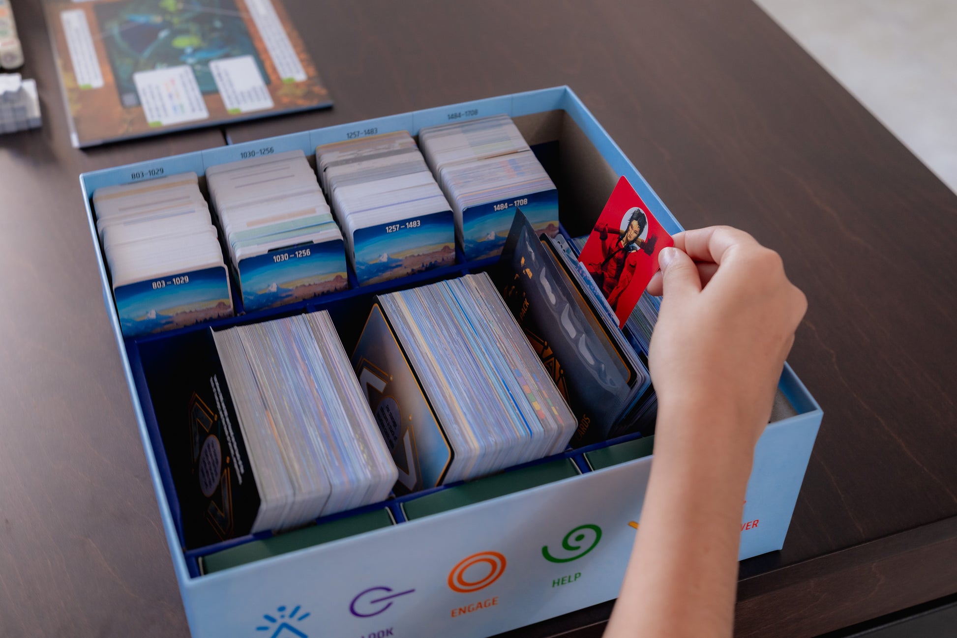 Stonemaier’s Vantage is an open-world, cooperative adventure game featuring an entire planet to explore in standalone sessions that begin with players scattered randomly across the world. With nearly 800 interconnected locations on cards and over 900 other discoverable cards, the world is your sandbox.