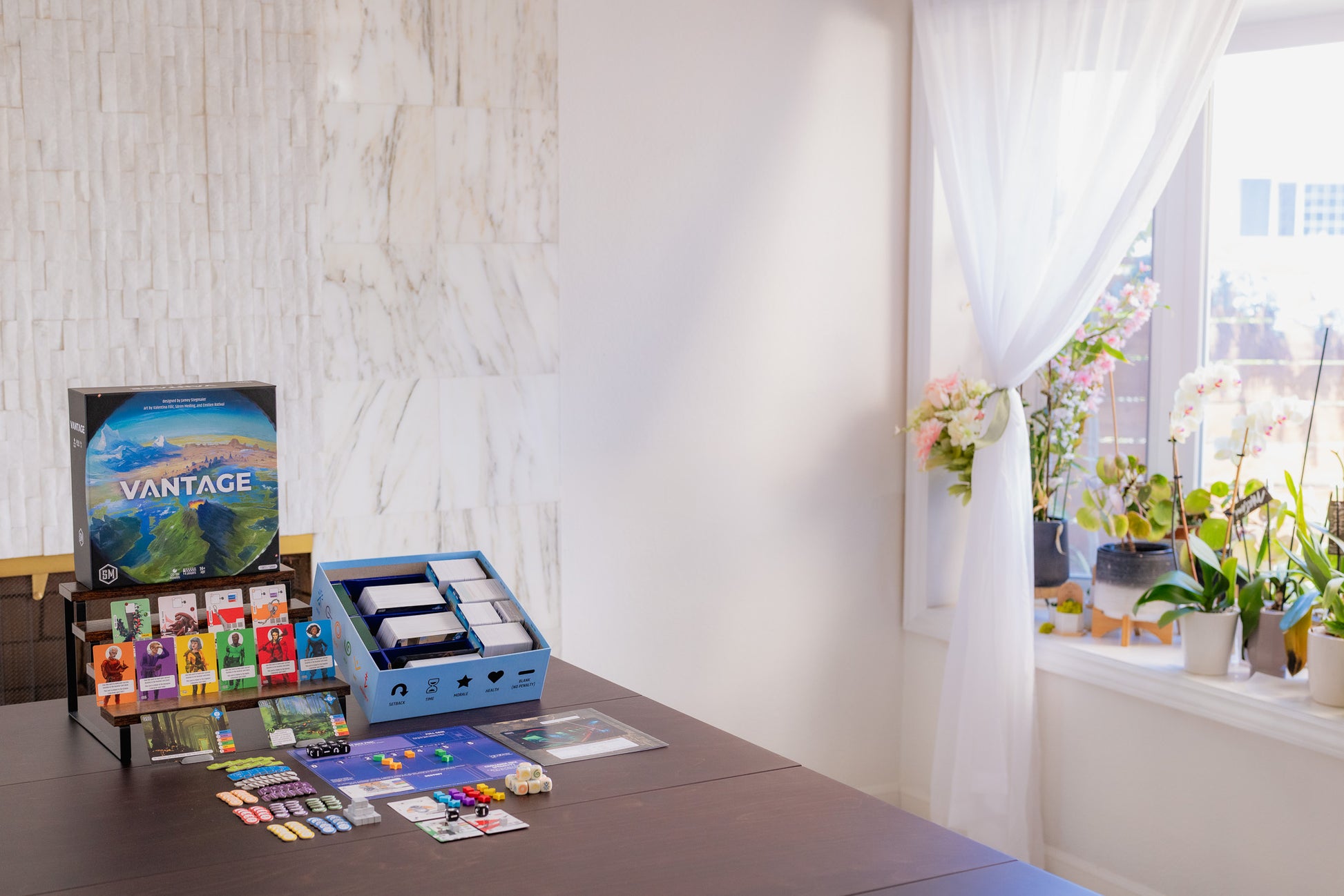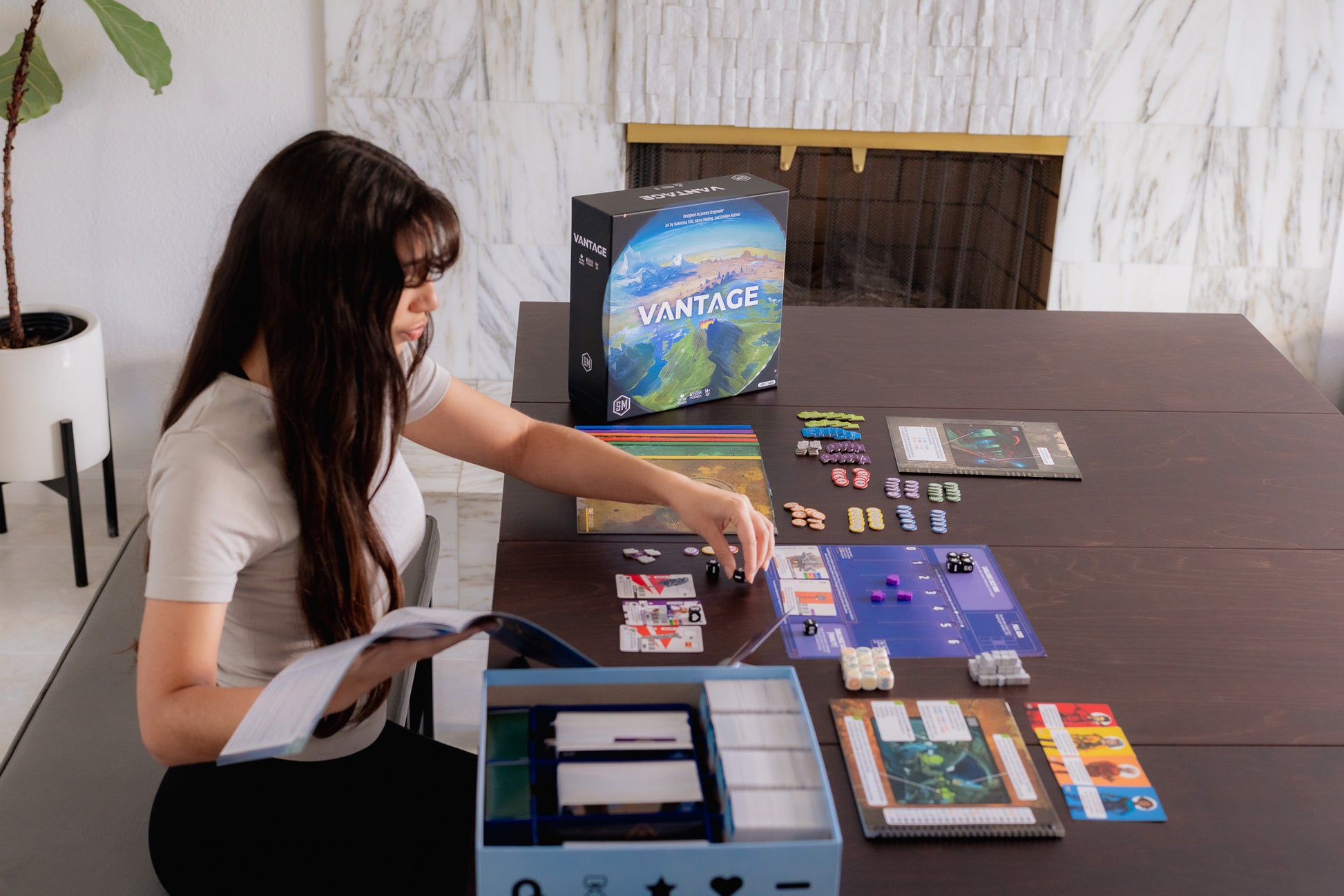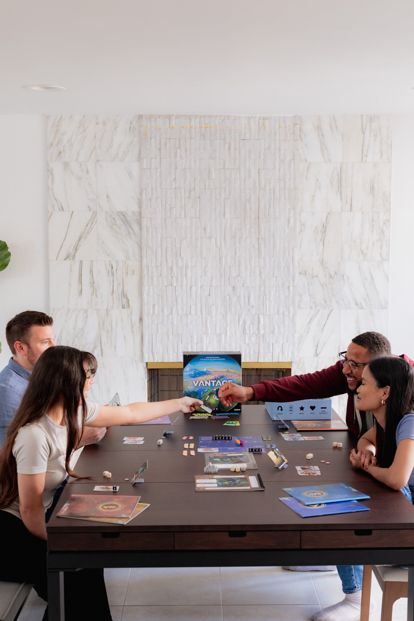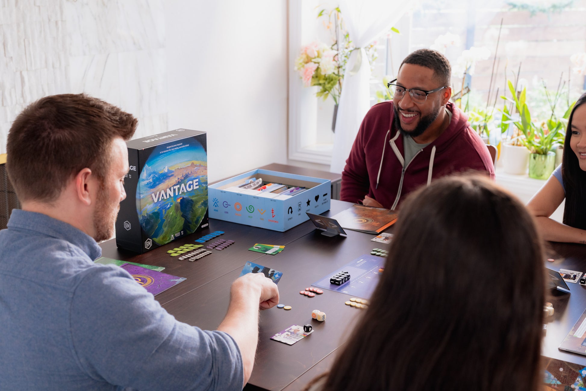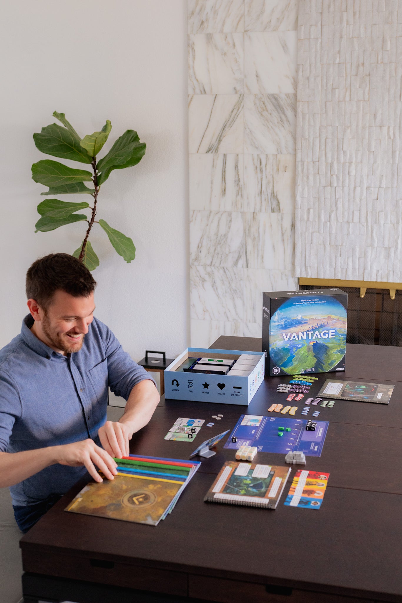 Stonemaier’s Vantage is an open-world, cooperative adventure game featuring an entire planet to explore in standalone sessions that begin with players scattered randomly across the world. With nearly 800 interconnected locations on cards and over 900 other discoverable cards, the world is your sandbox.