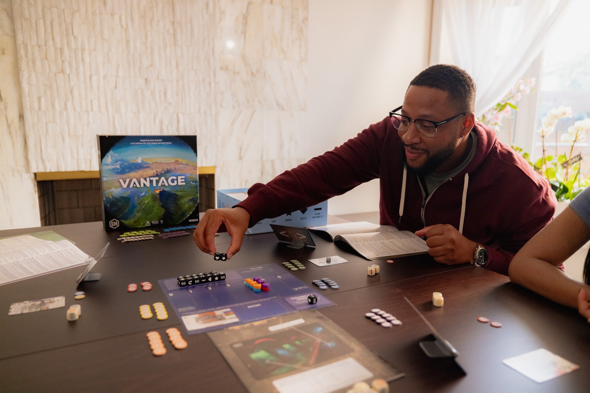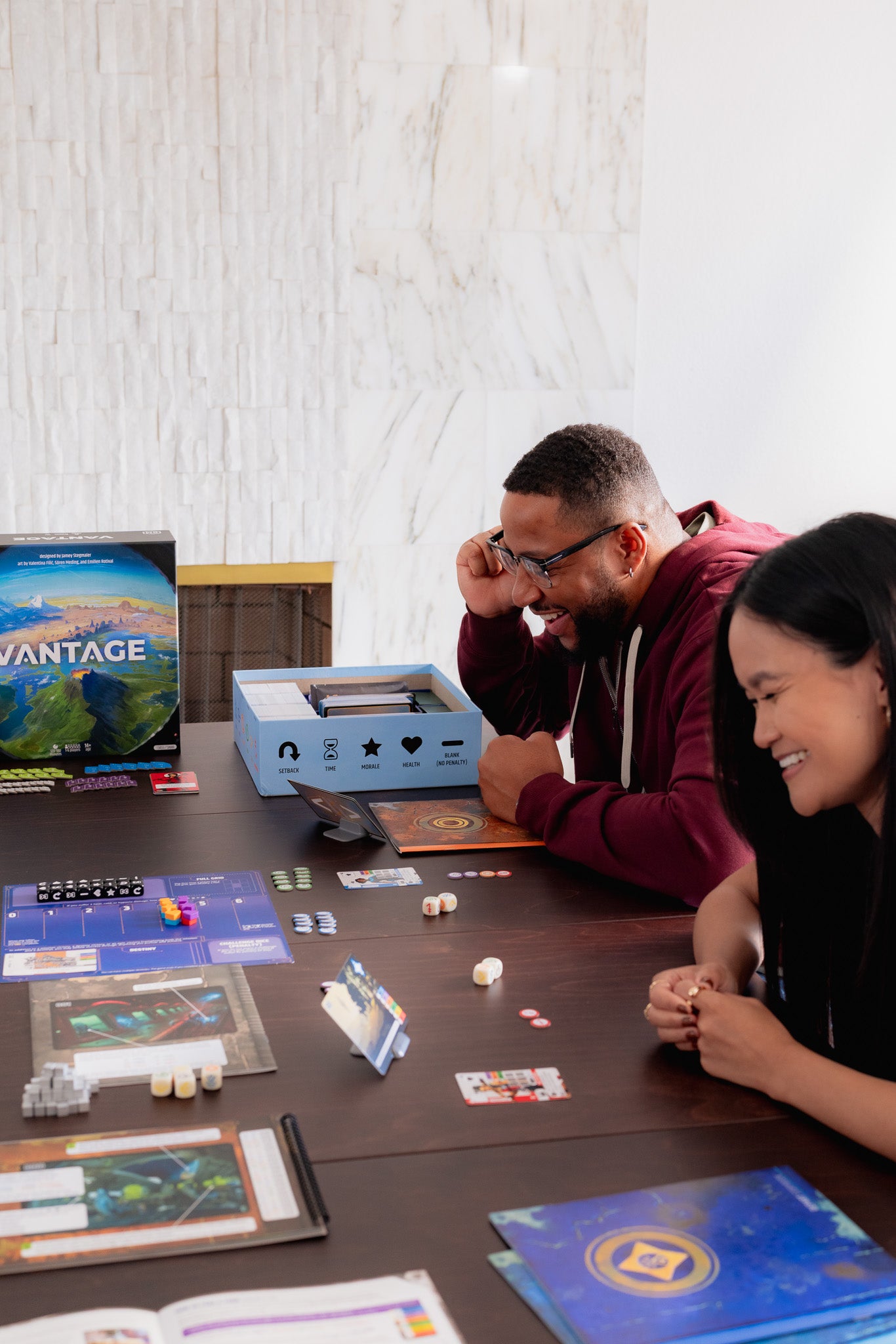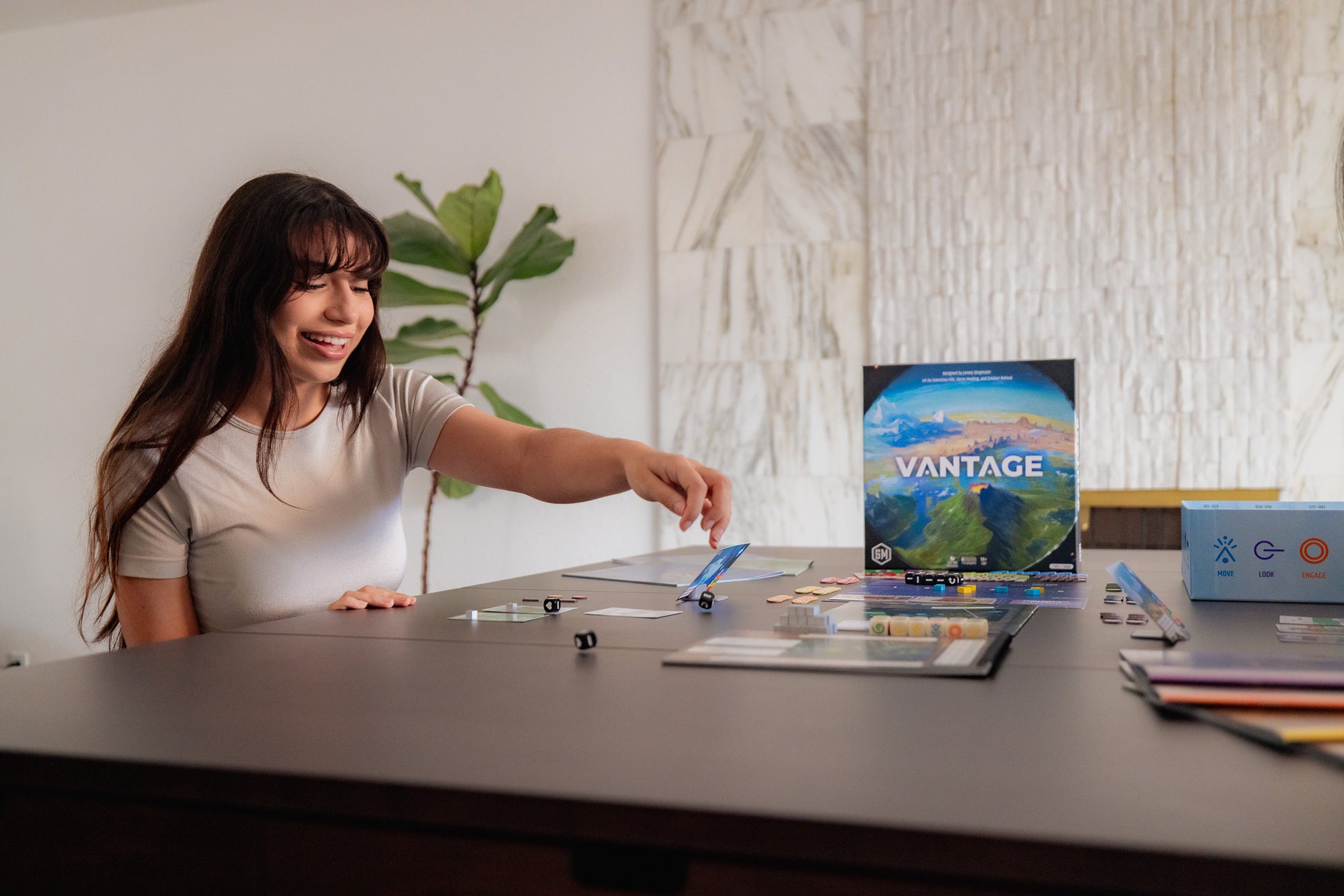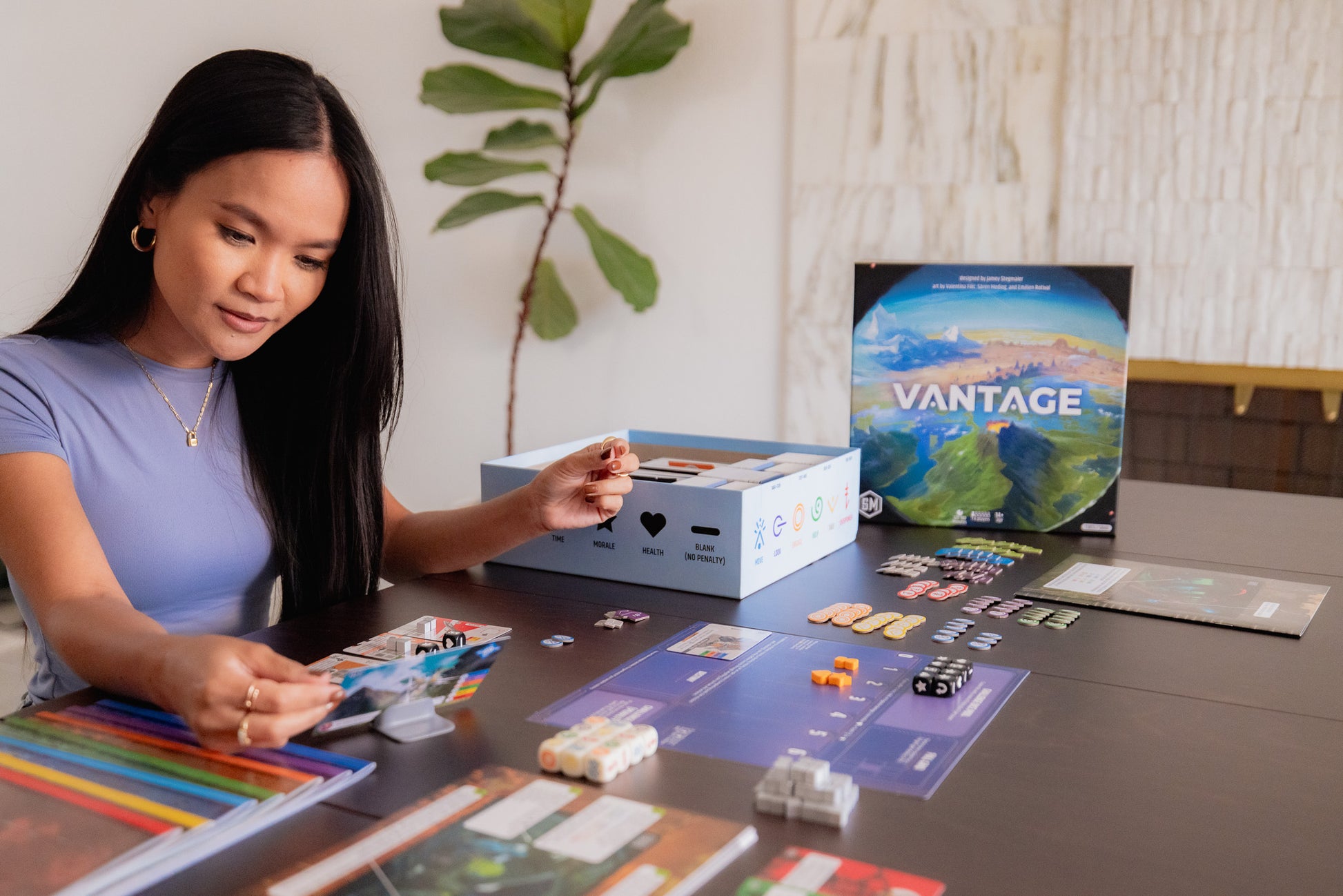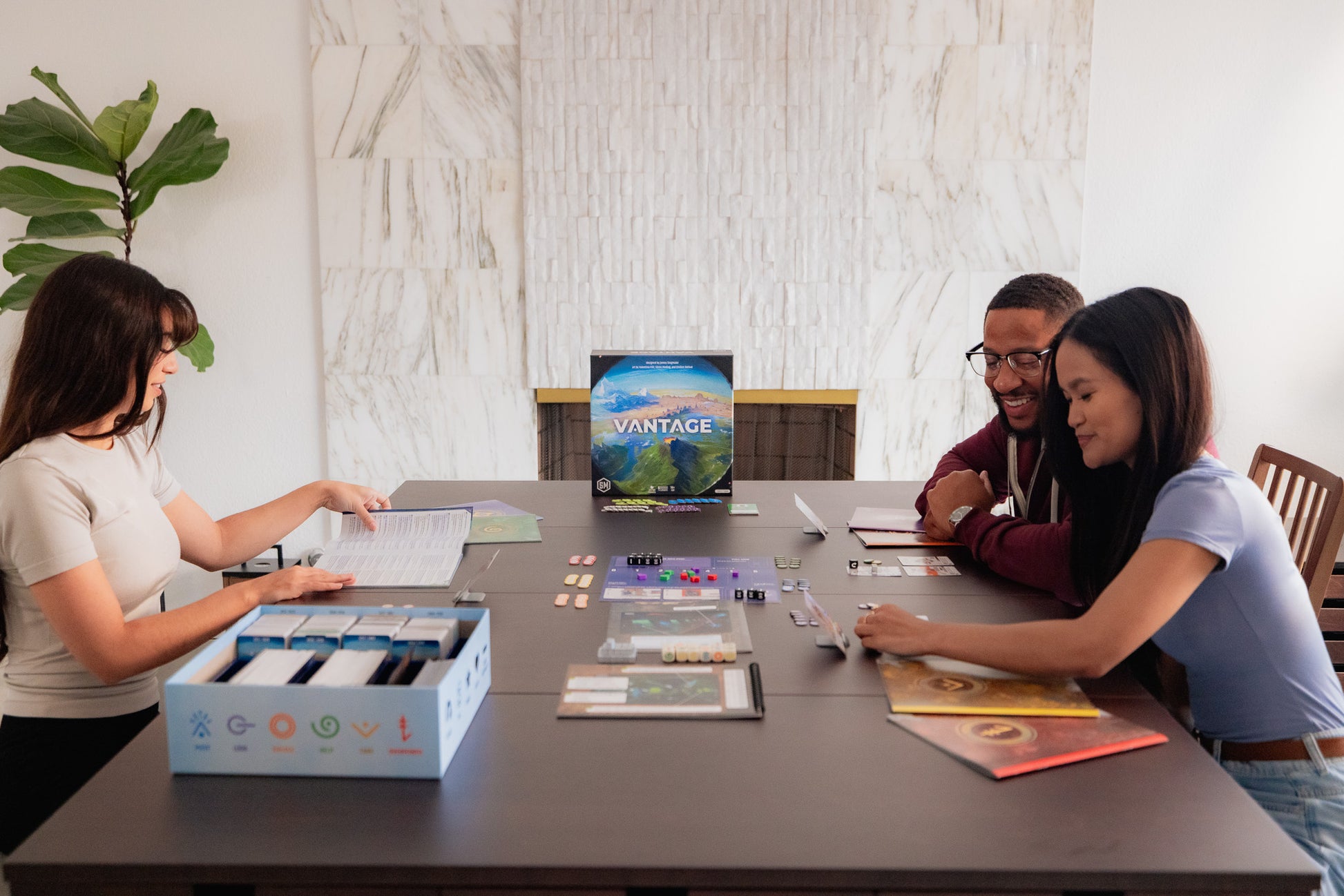 Stonemaier’s Vantage is an open-world, cooperative adventure game featuring an entire planet to explore in standalone sessions that begin with players scattered randomly across the world. With nearly 800 interconnected locations on cards and over 900 other discoverable cards, the world is your sandbox.