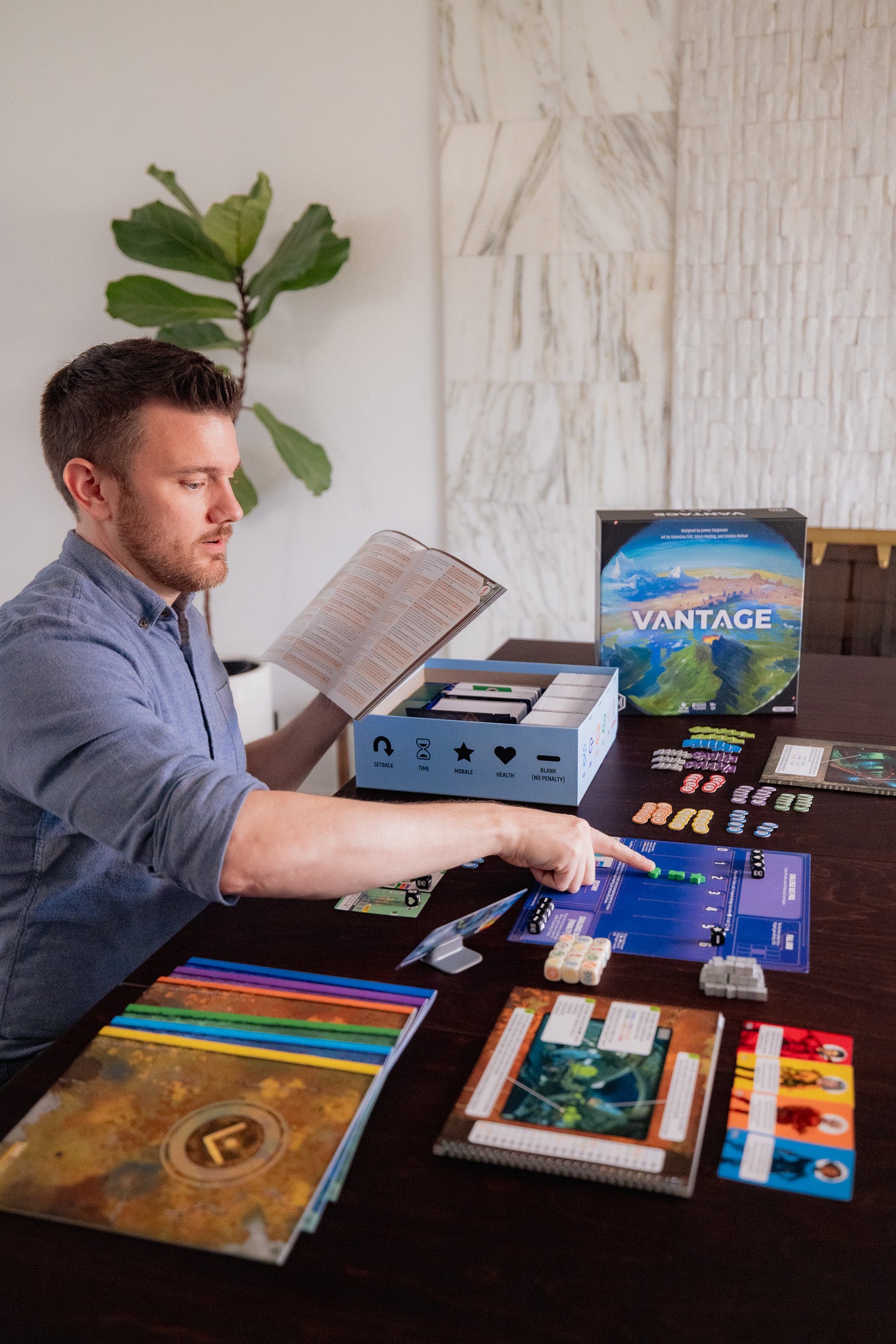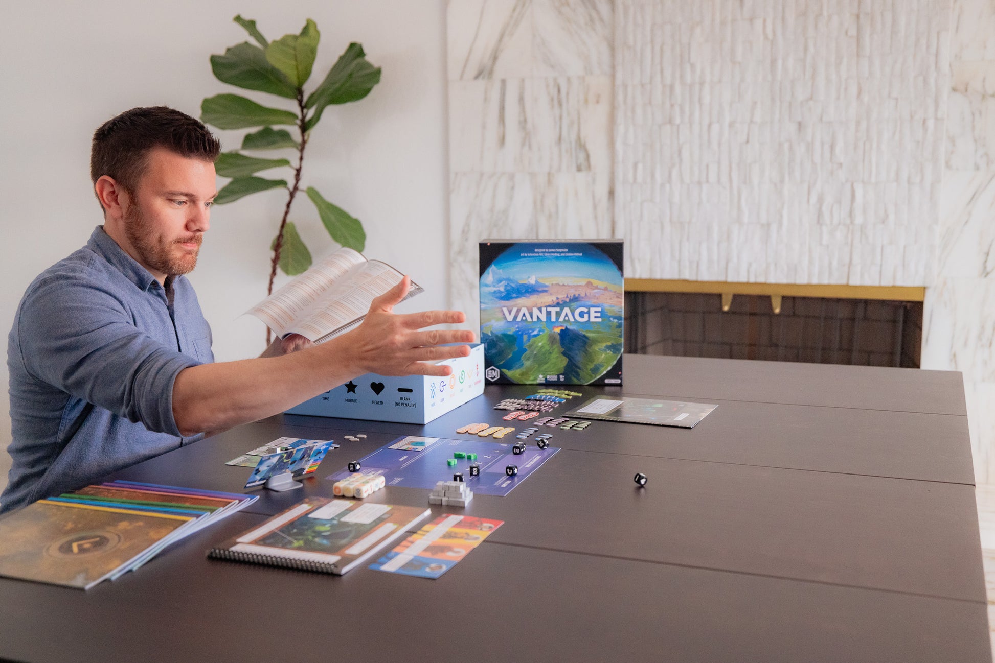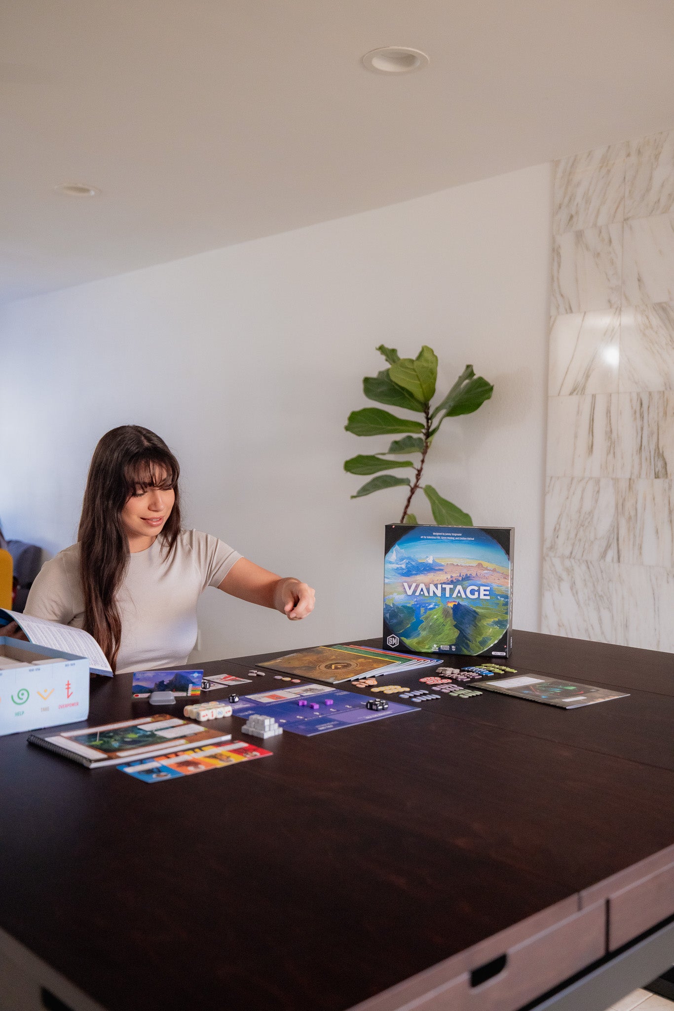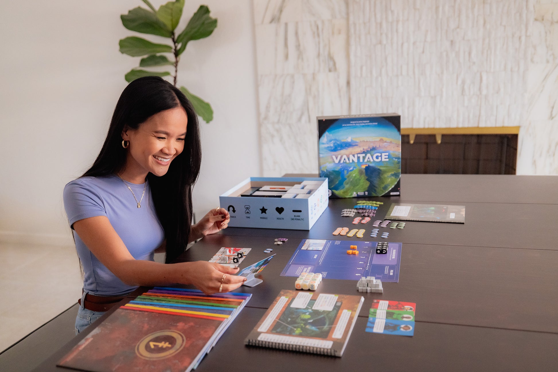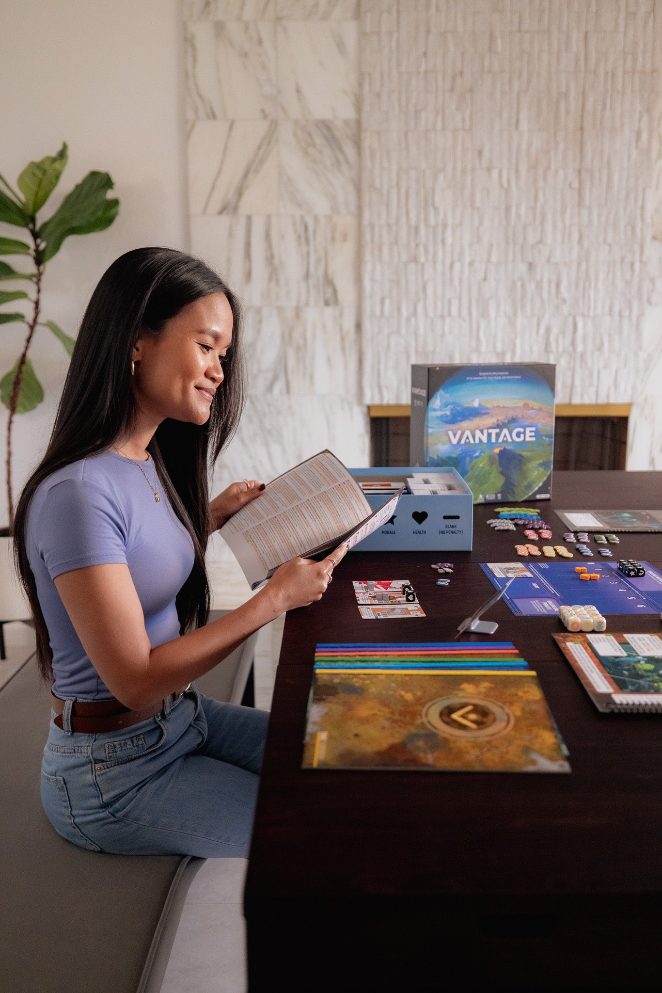 Stonemaier’s Vantage is an open-world, cooperative adventure game featuring an entire planet to explore in standalone sessions that begin with players scattered randomly across the world. With nearly 800 interconnected locations on cards and over 900 other discoverable cards, the world is your sandbox.