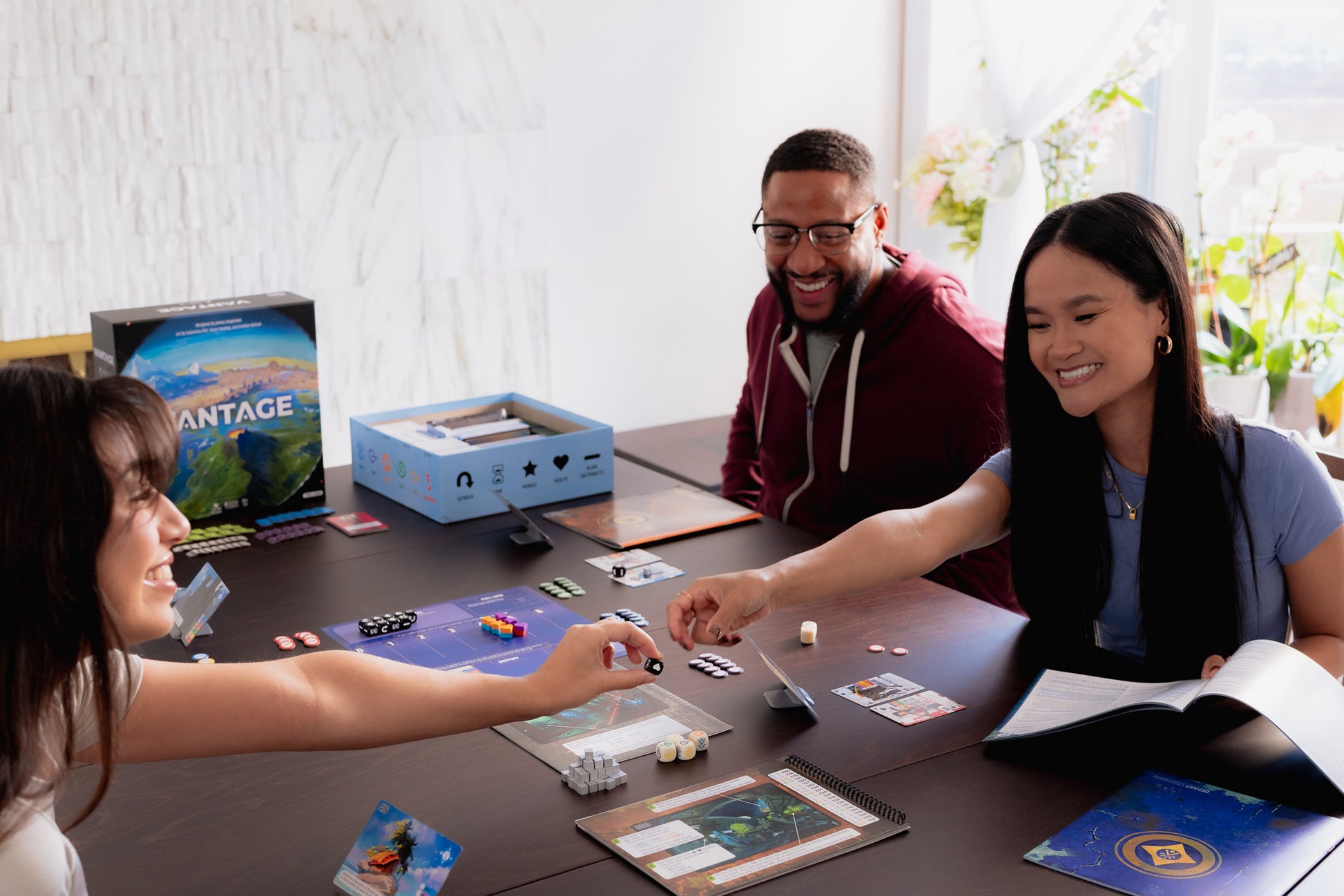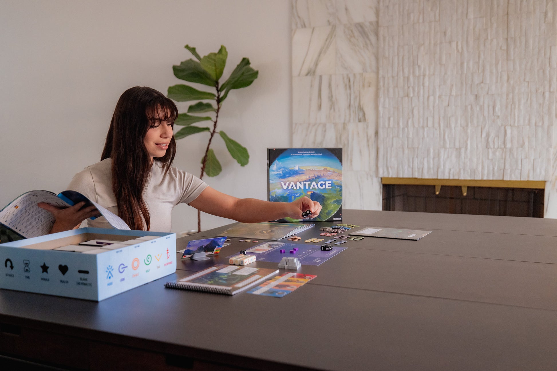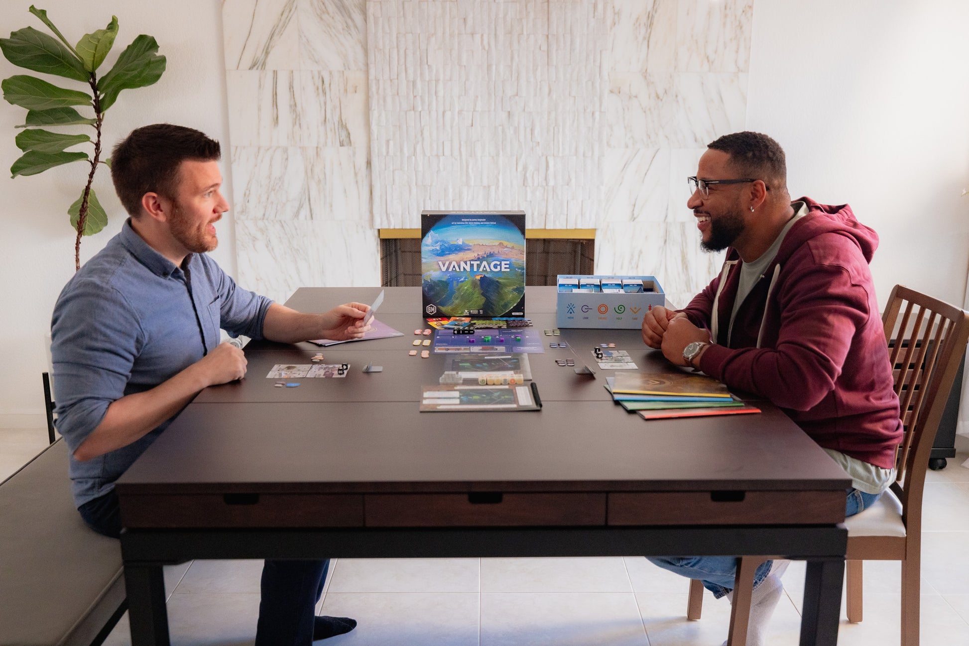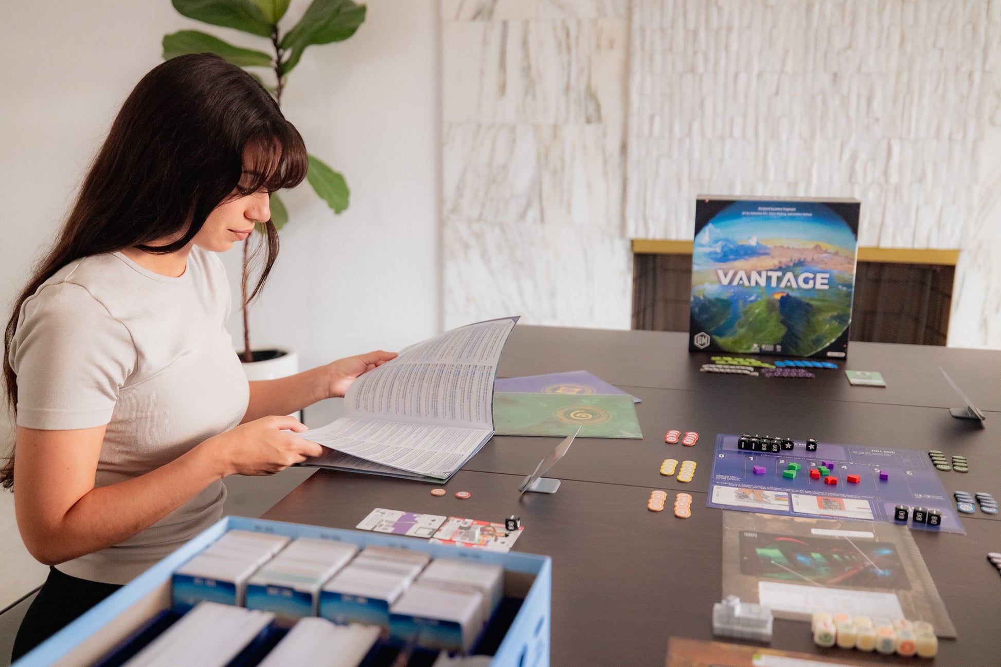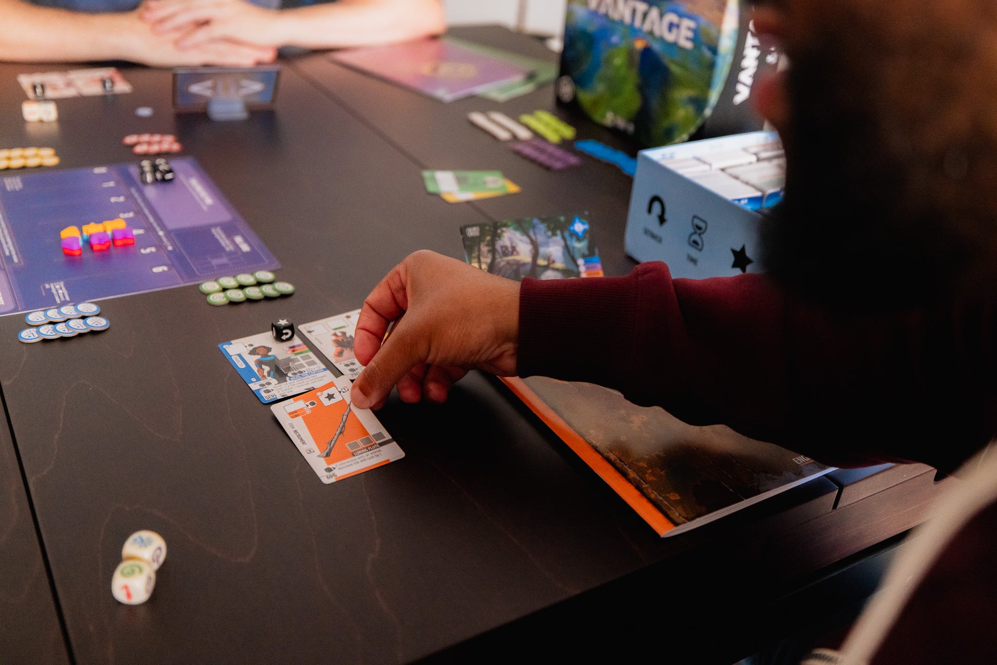 Stonemaier’s Vantage is an open-world, cooperative adventure game featuring an entire planet to explore in standalone sessions that begin with players scattered randomly across the world. With nearly 800 interconnected locations on cards and over 900 other discoverable cards, the world is your sandbox.