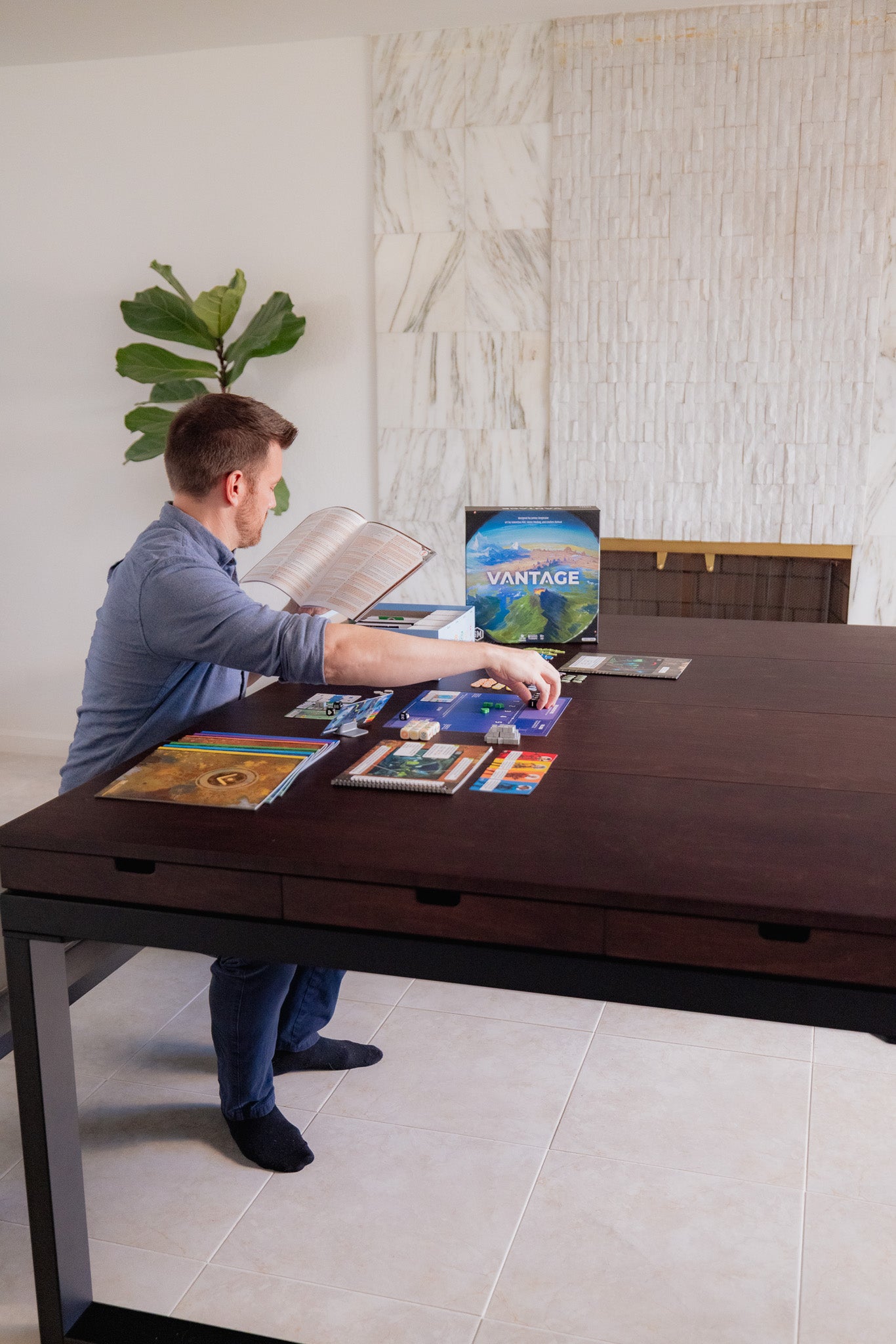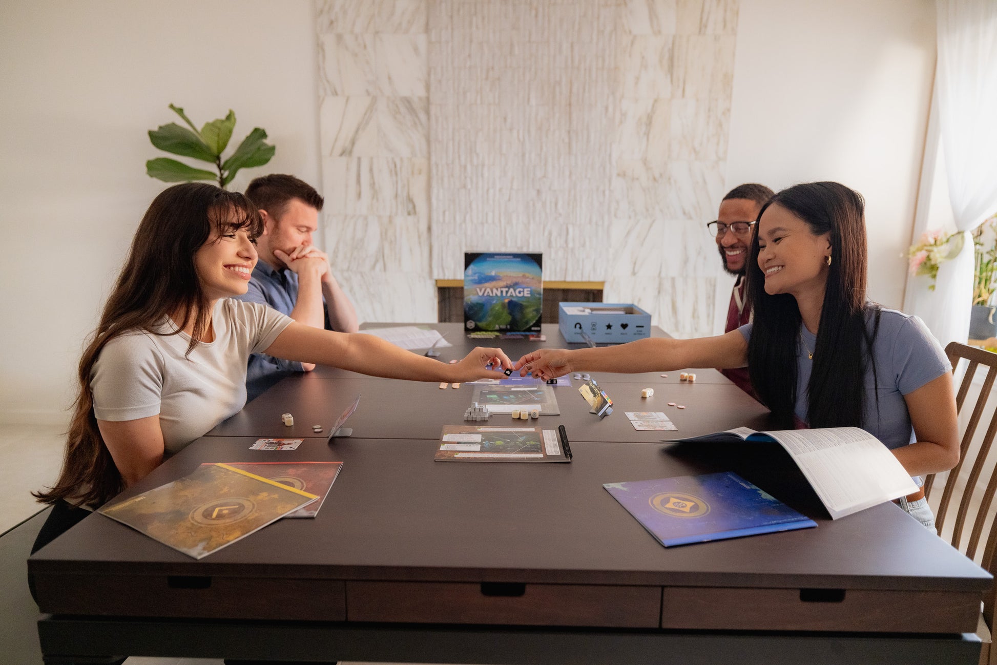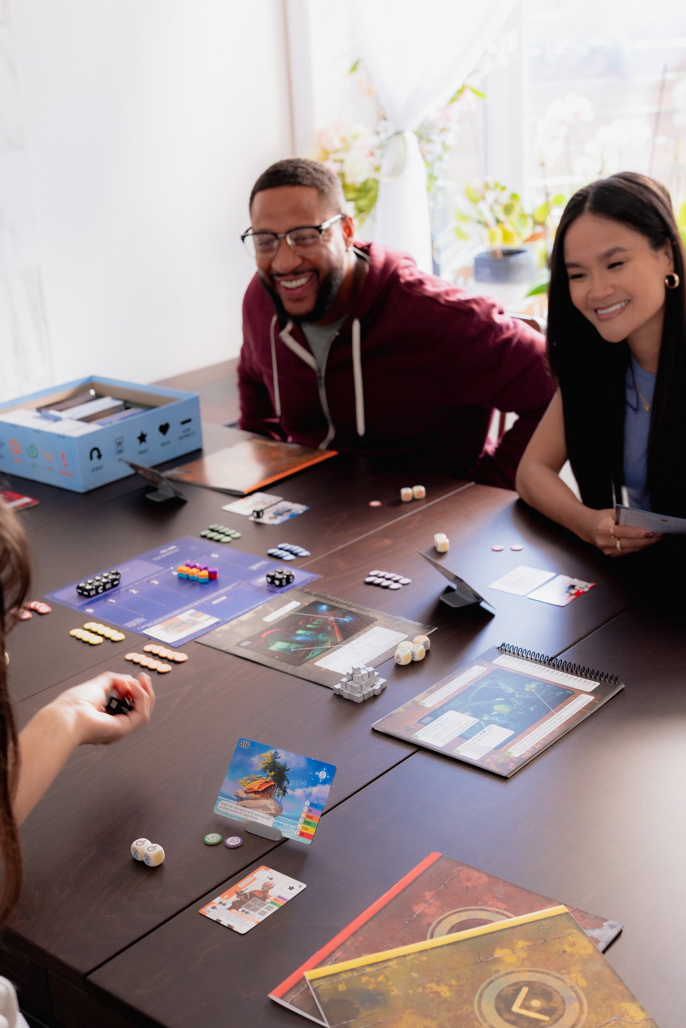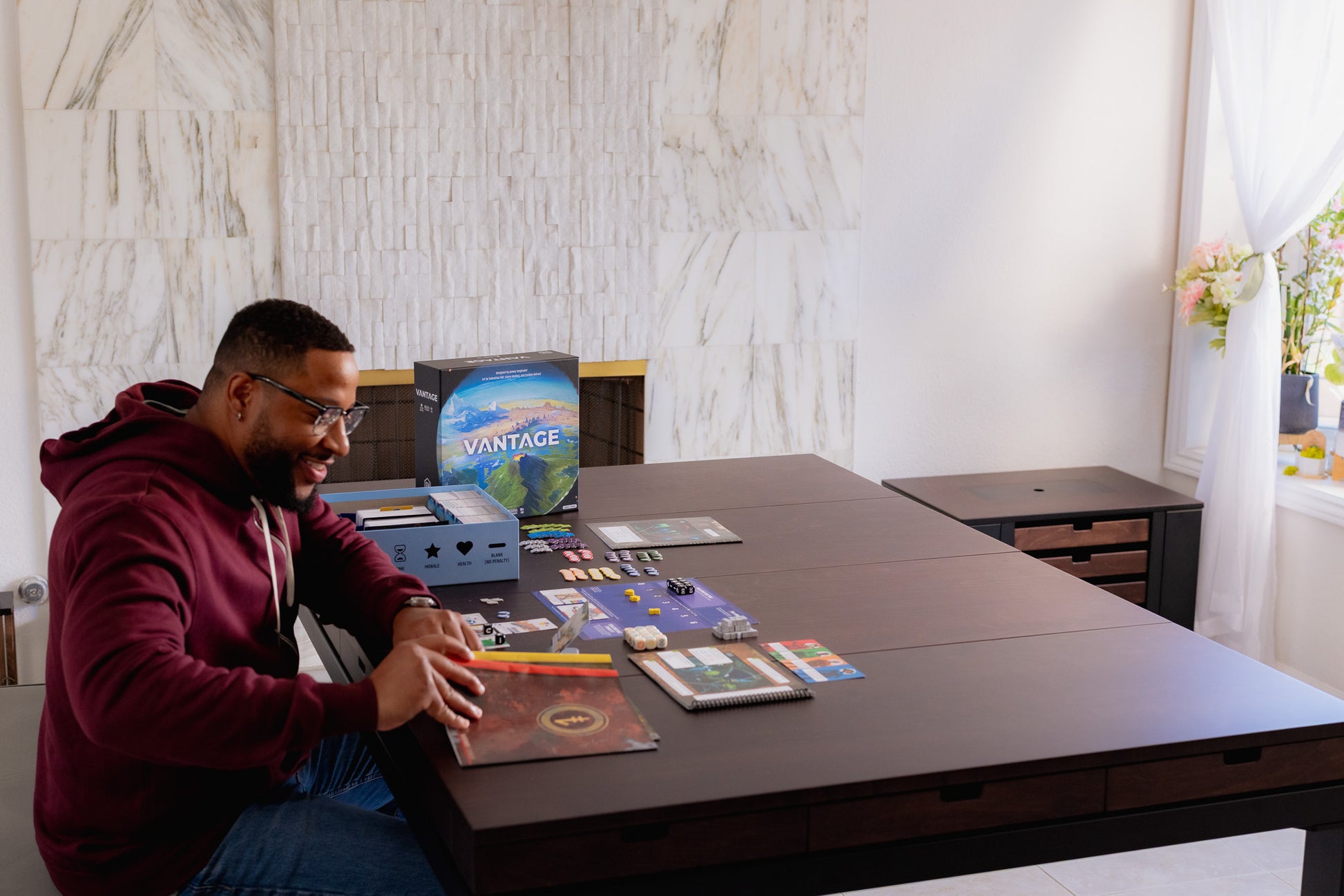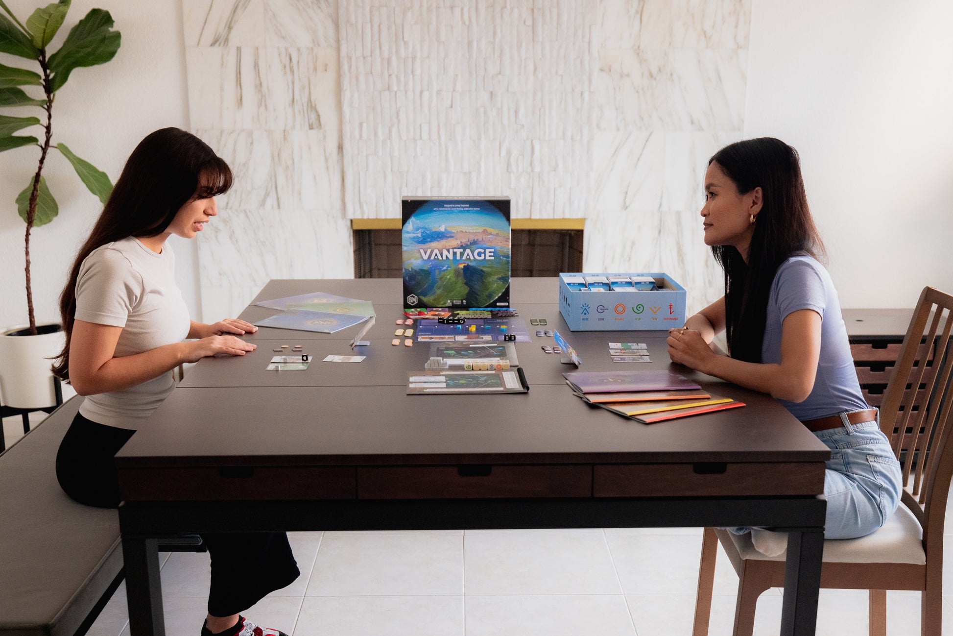 Stonemaier’s Vantage is an open-world, cooperative adventure game featuring an entire planet to explore in standalone sessions that begin with players scattered randomly across the world. With nearly 800 interconnected locations on cards and over 900 other discoverable cards, the world is your sandbox.