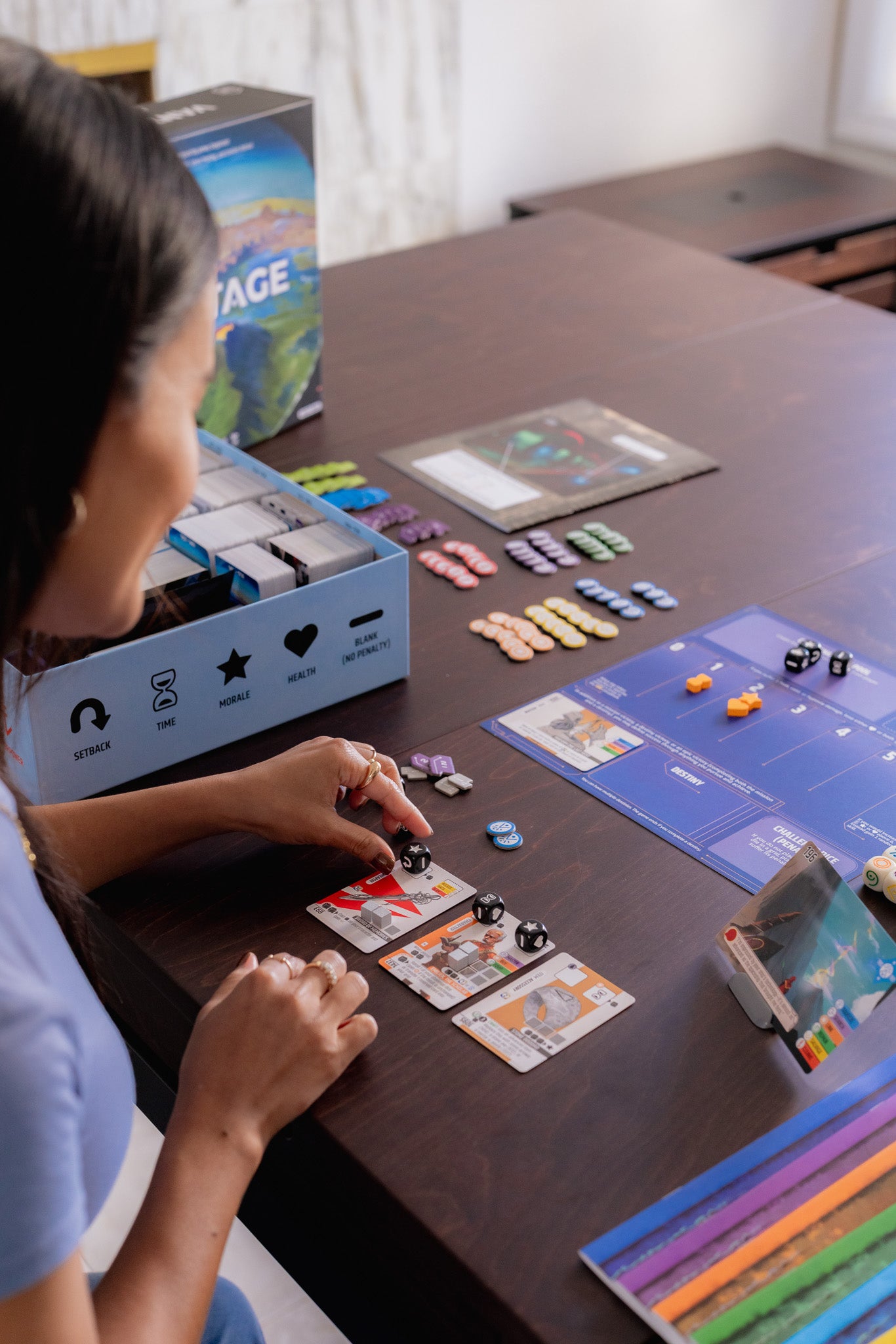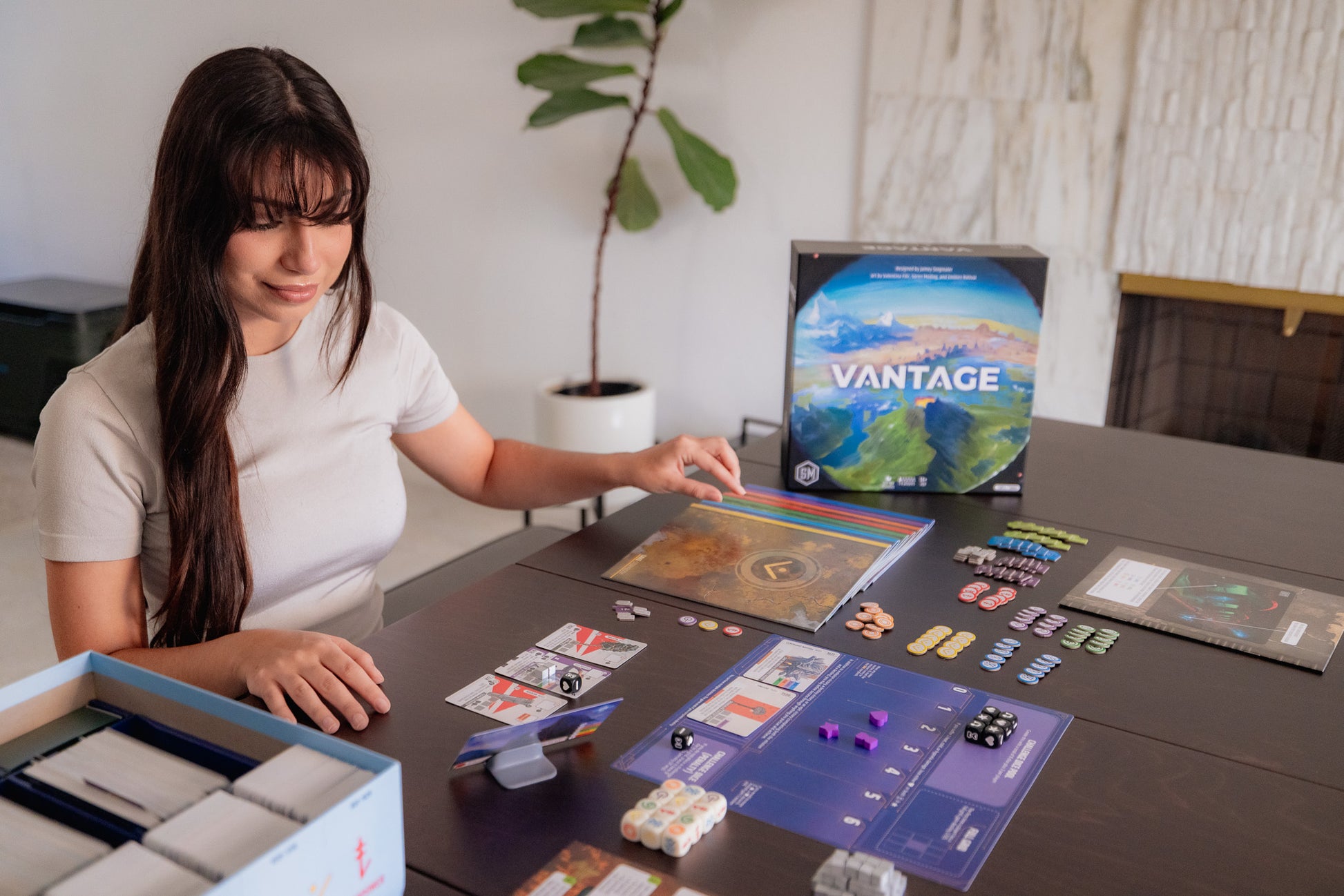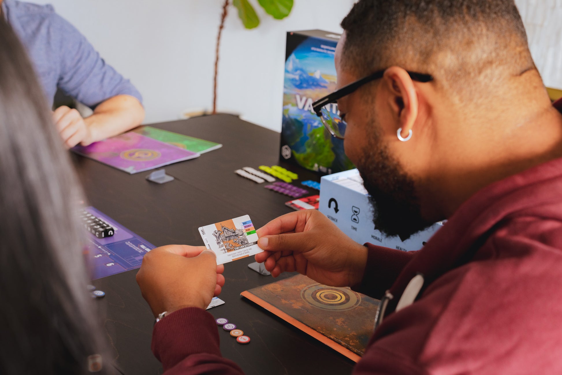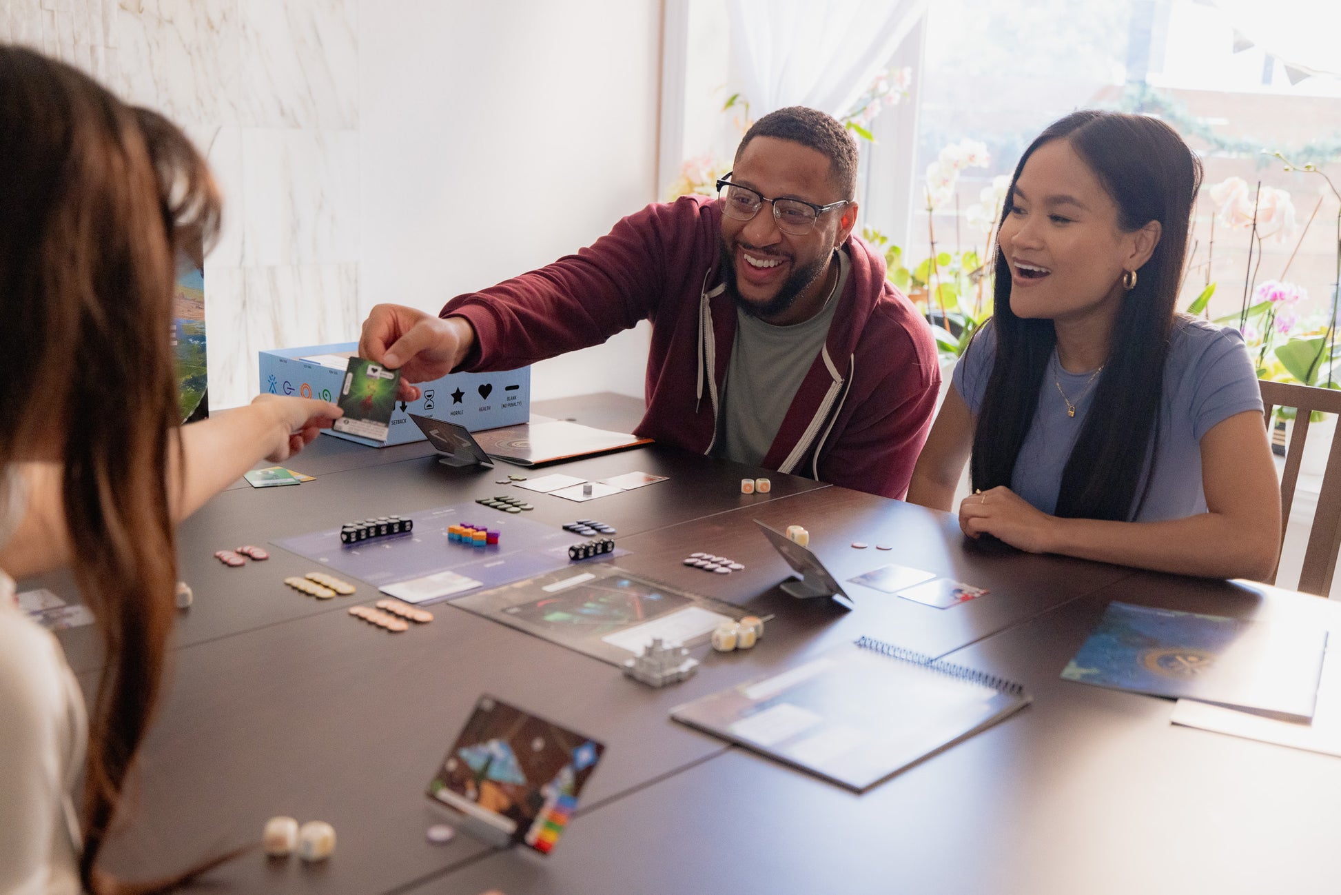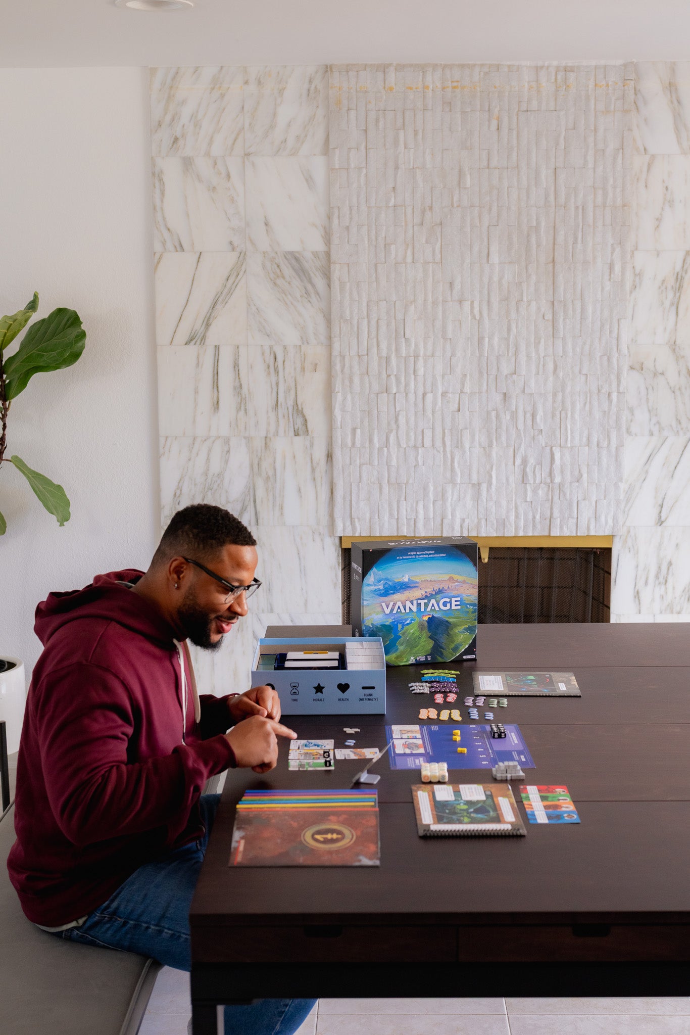 Stonemaier’s Vantage is an open-world, cooperative adventure game featuring an entire planet to explore in standalone sessions that begin with players scattered randomly across the world. With nearly 800 interconnected locations on cards and over 900 other discoverable cards, the world is your sandbox.