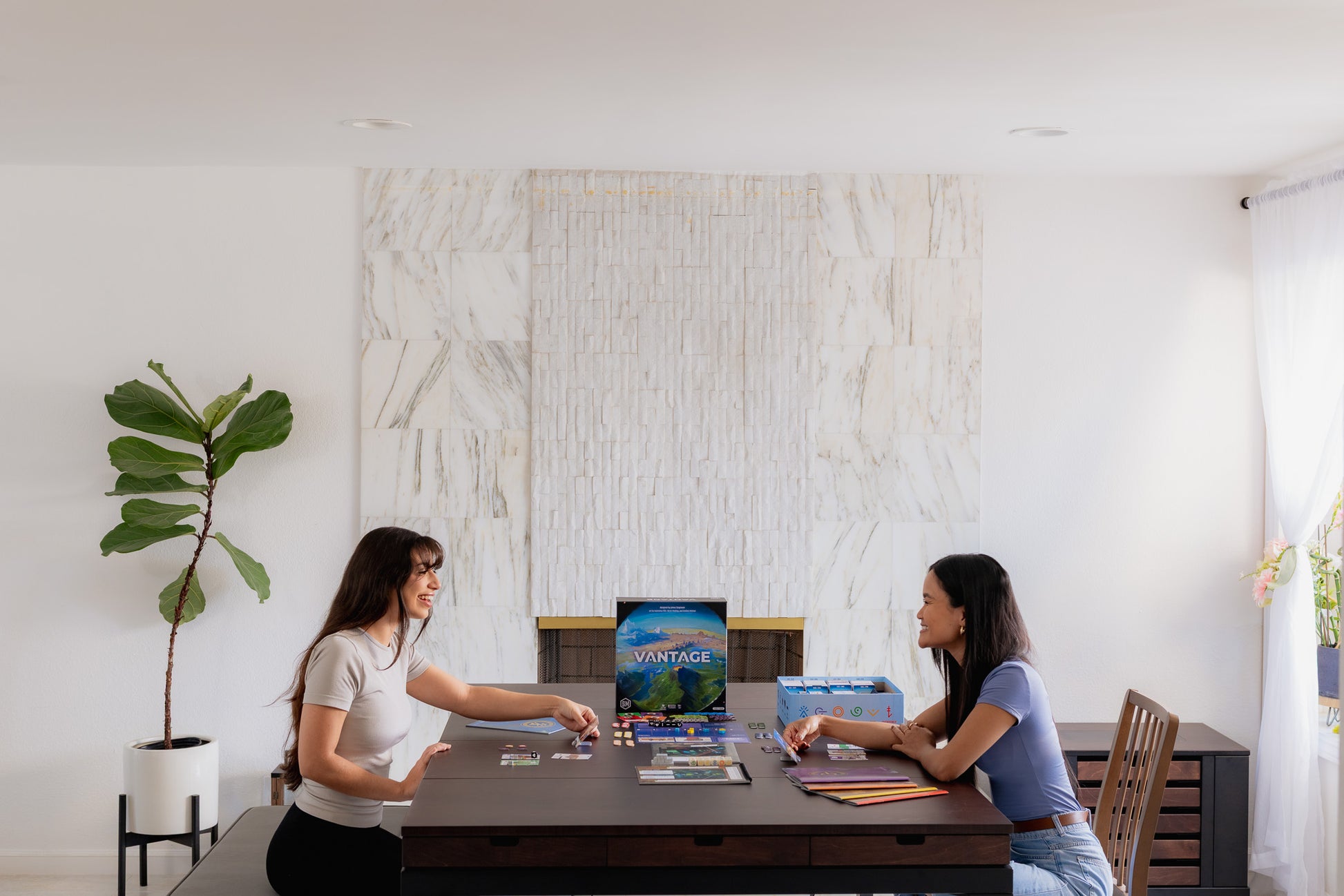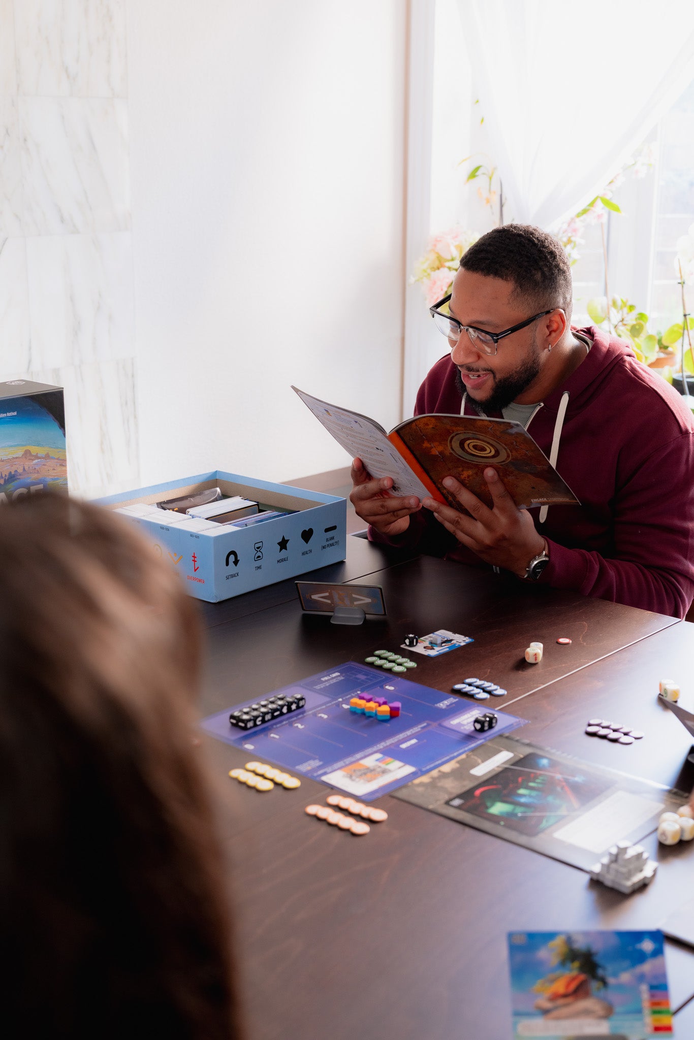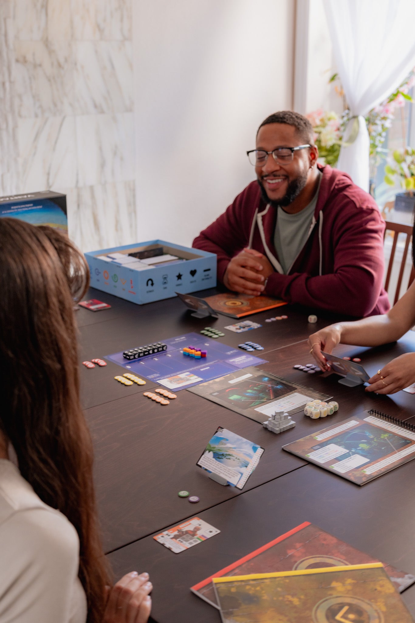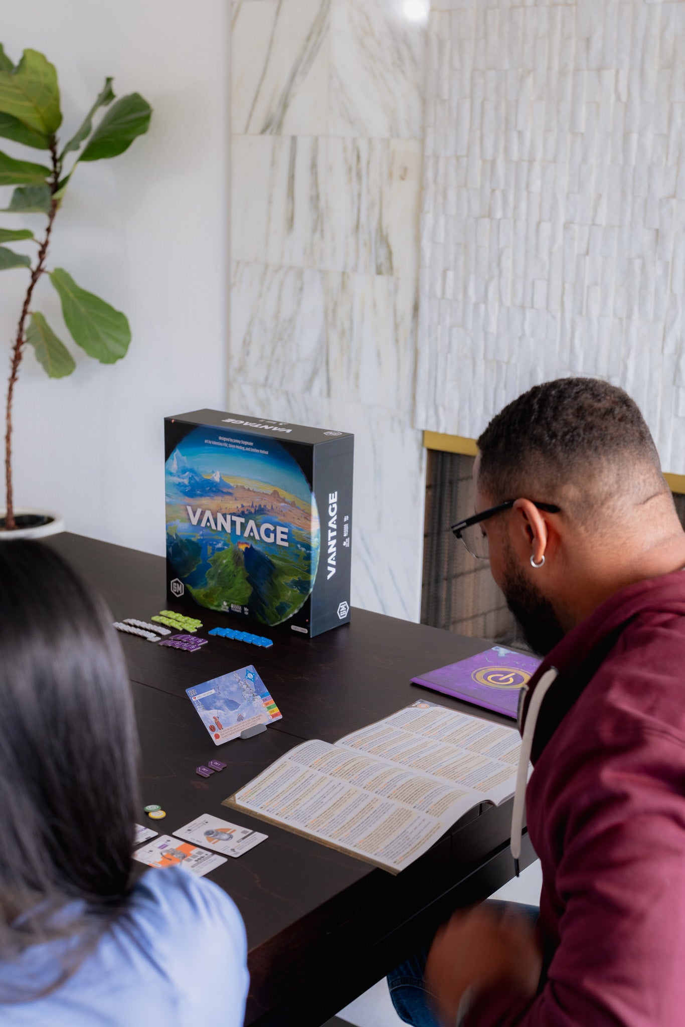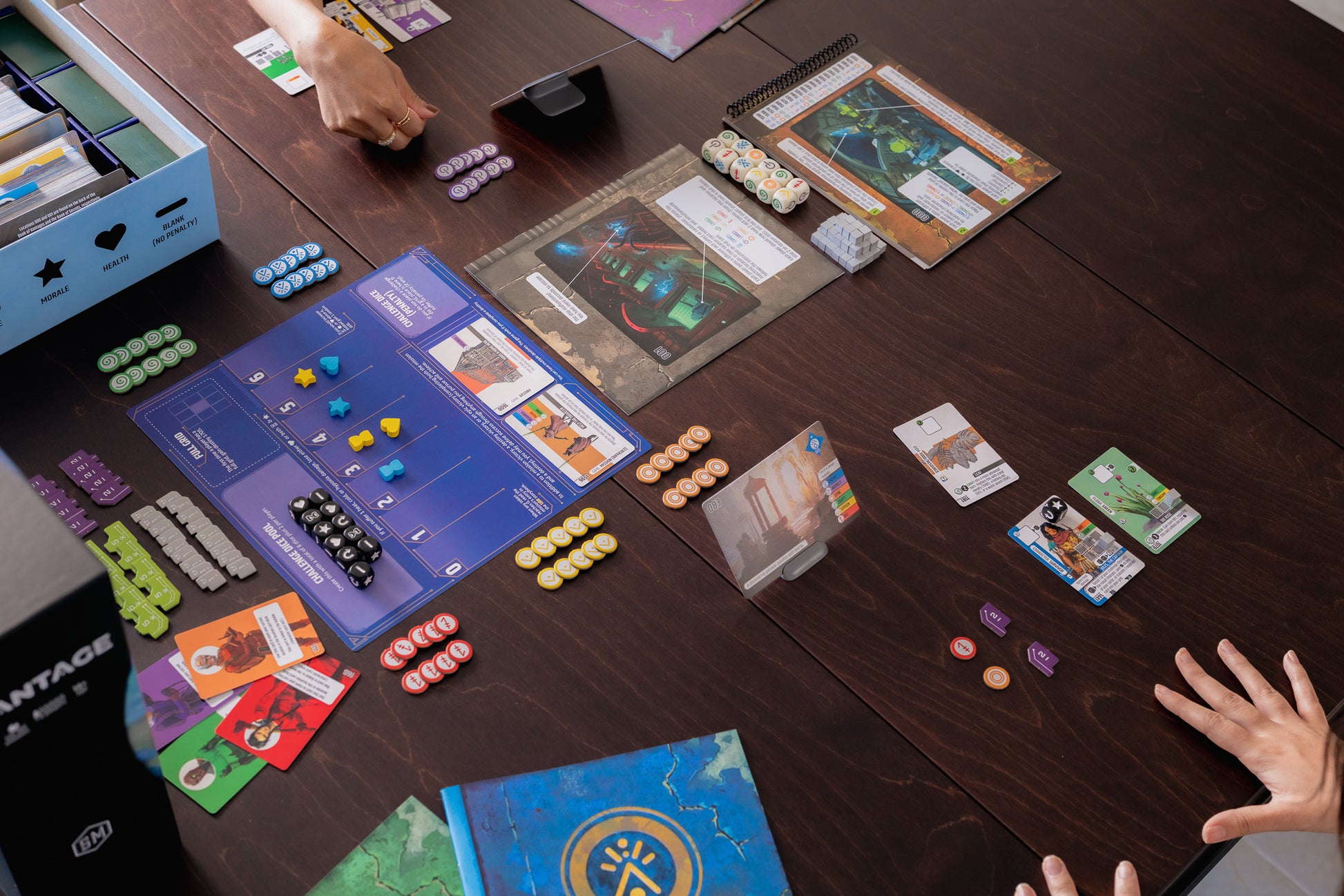 Stonemaier’s Vantage is an open-world, cooperative adventure game featuring an entire planet to explore in standalone sessions that begin with players scattered randomly across the world. With nearly 800 interconnected locations on cards and over 900 other discoverable cards, the world is your sandbox.