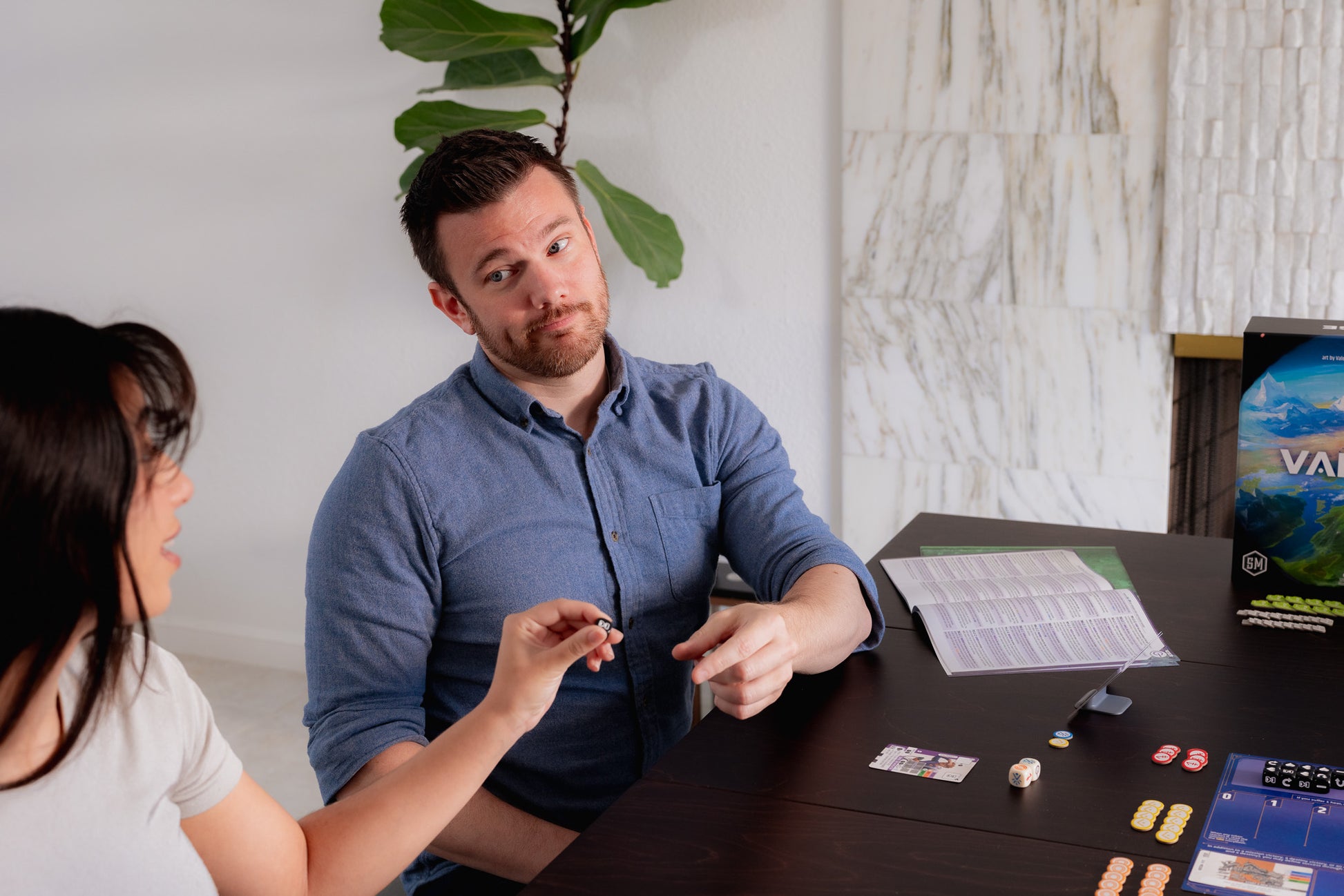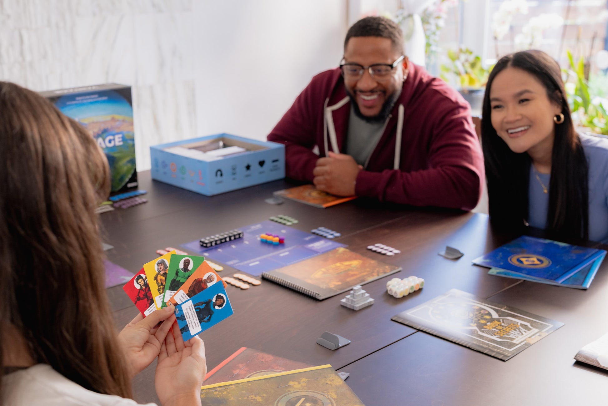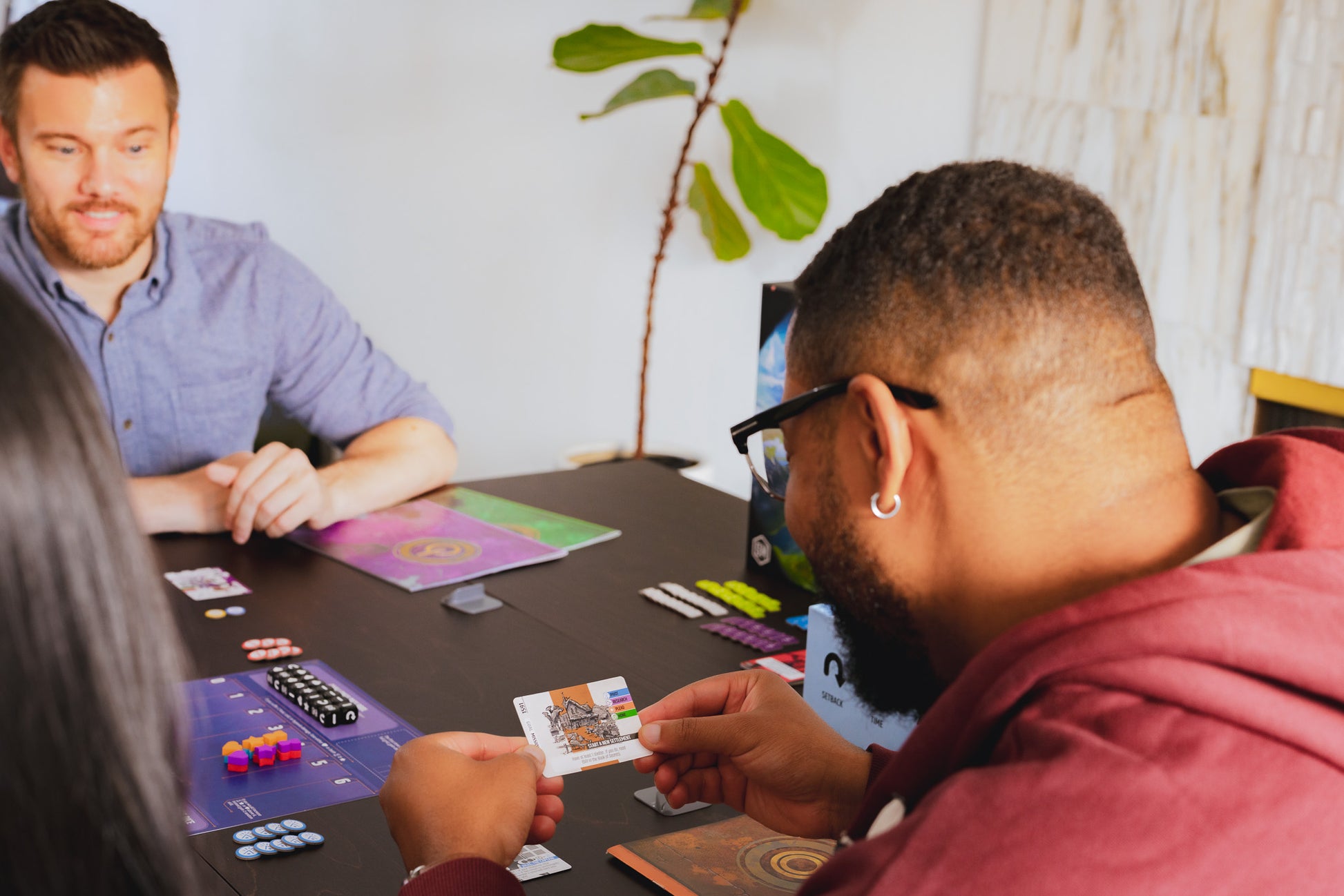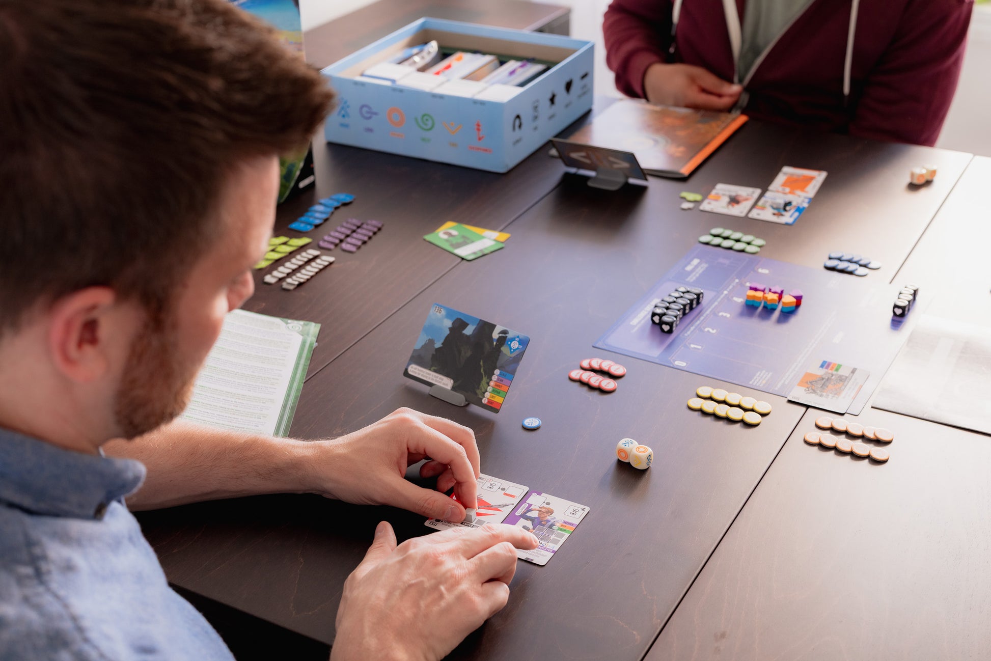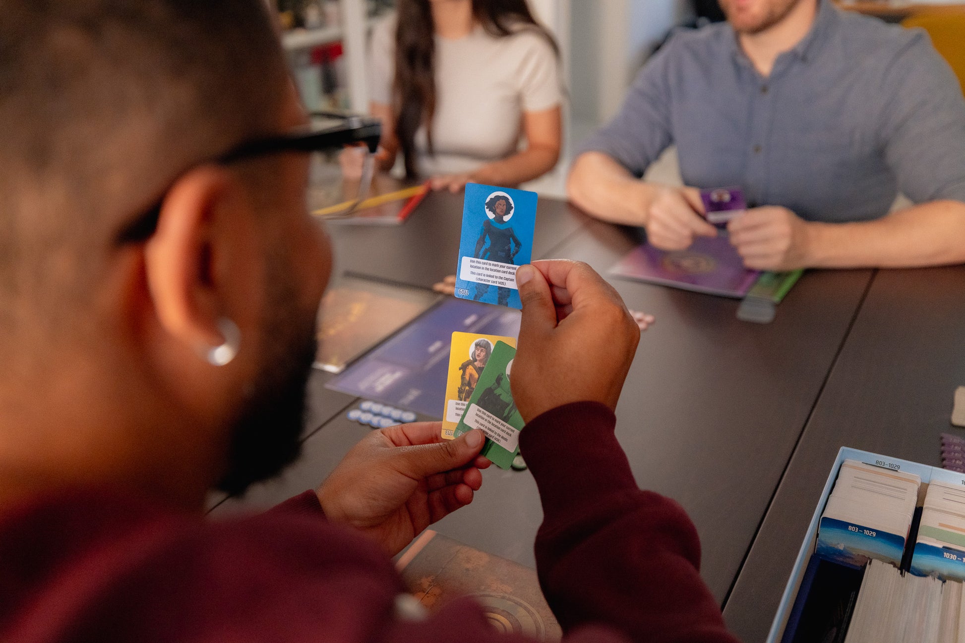 Stonemaier’s Vantage is an open-world, cooperative adventure game featuring an entire planet to explore in standalone sessions that begin with players scattered randomly across the world. With nearly 800 interconnected locations on cards and over 900 other discoverable cards, the world is your sandbox.