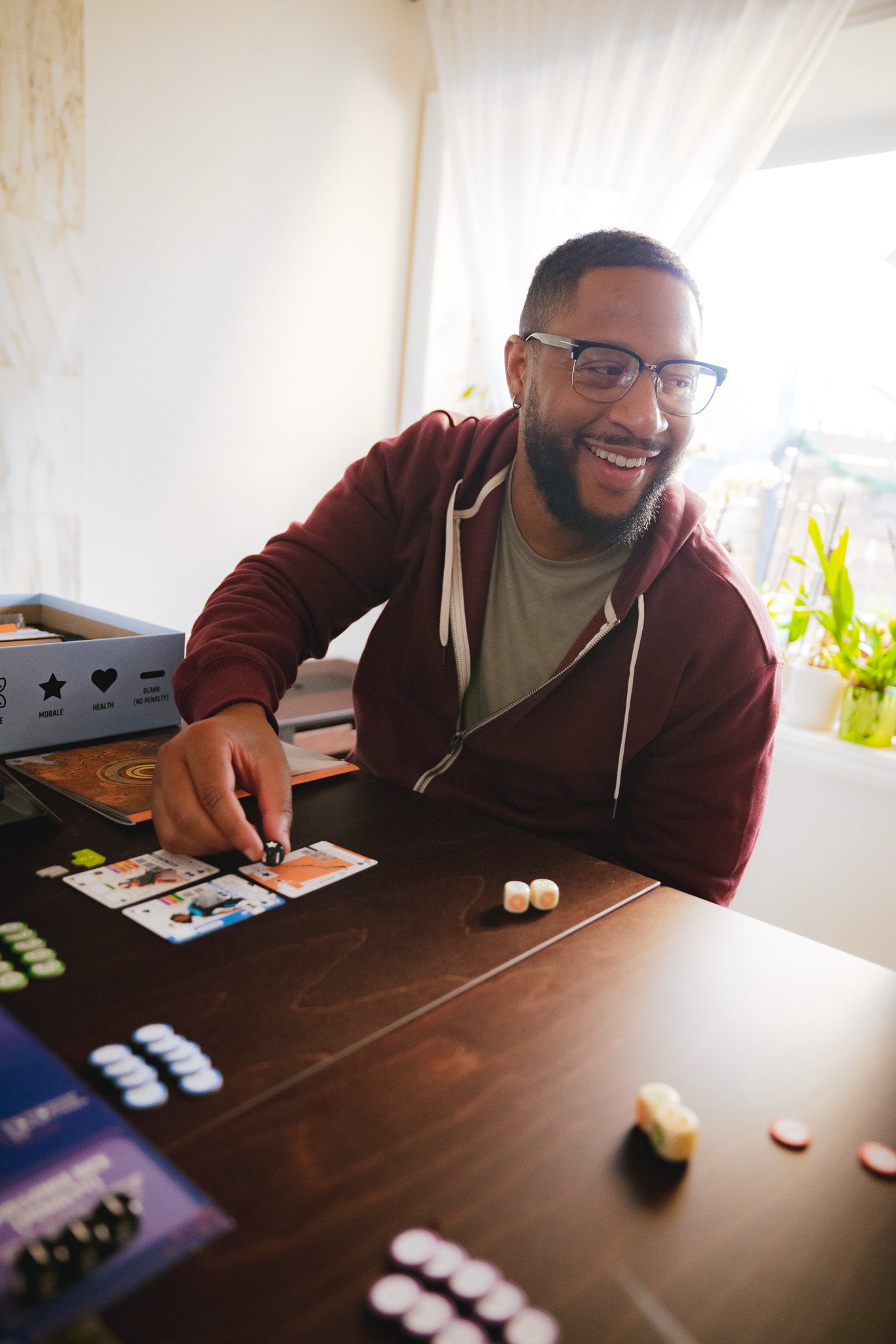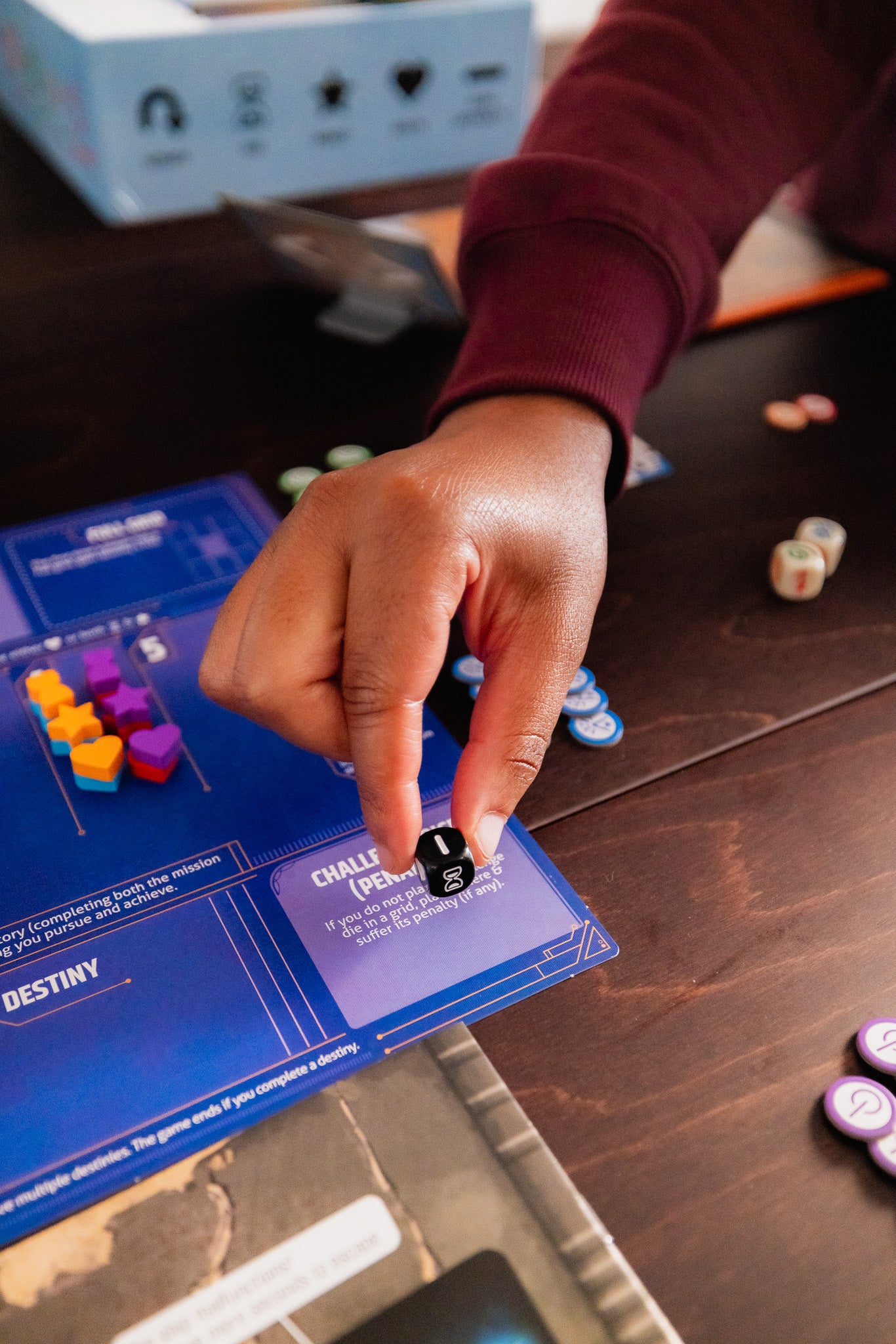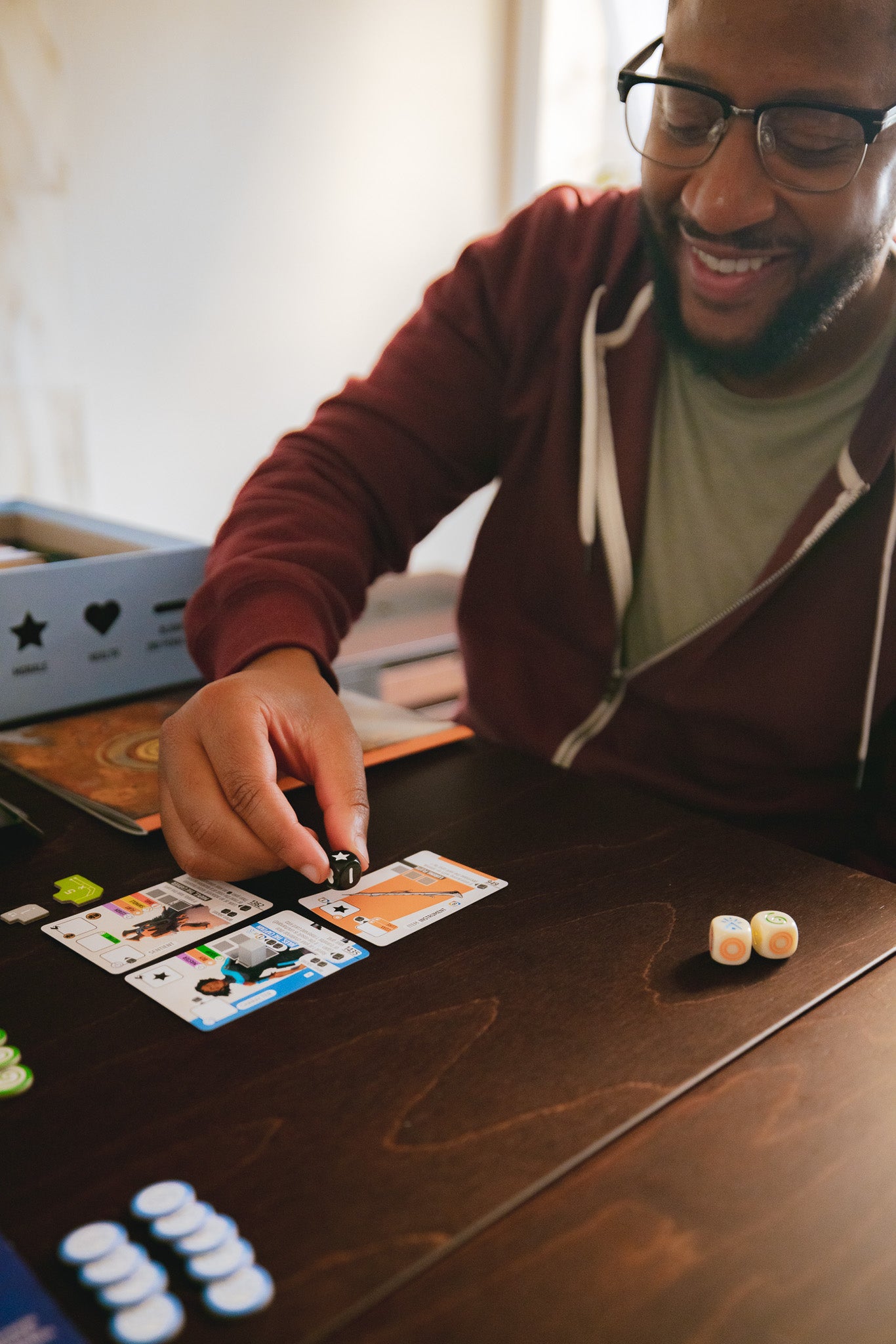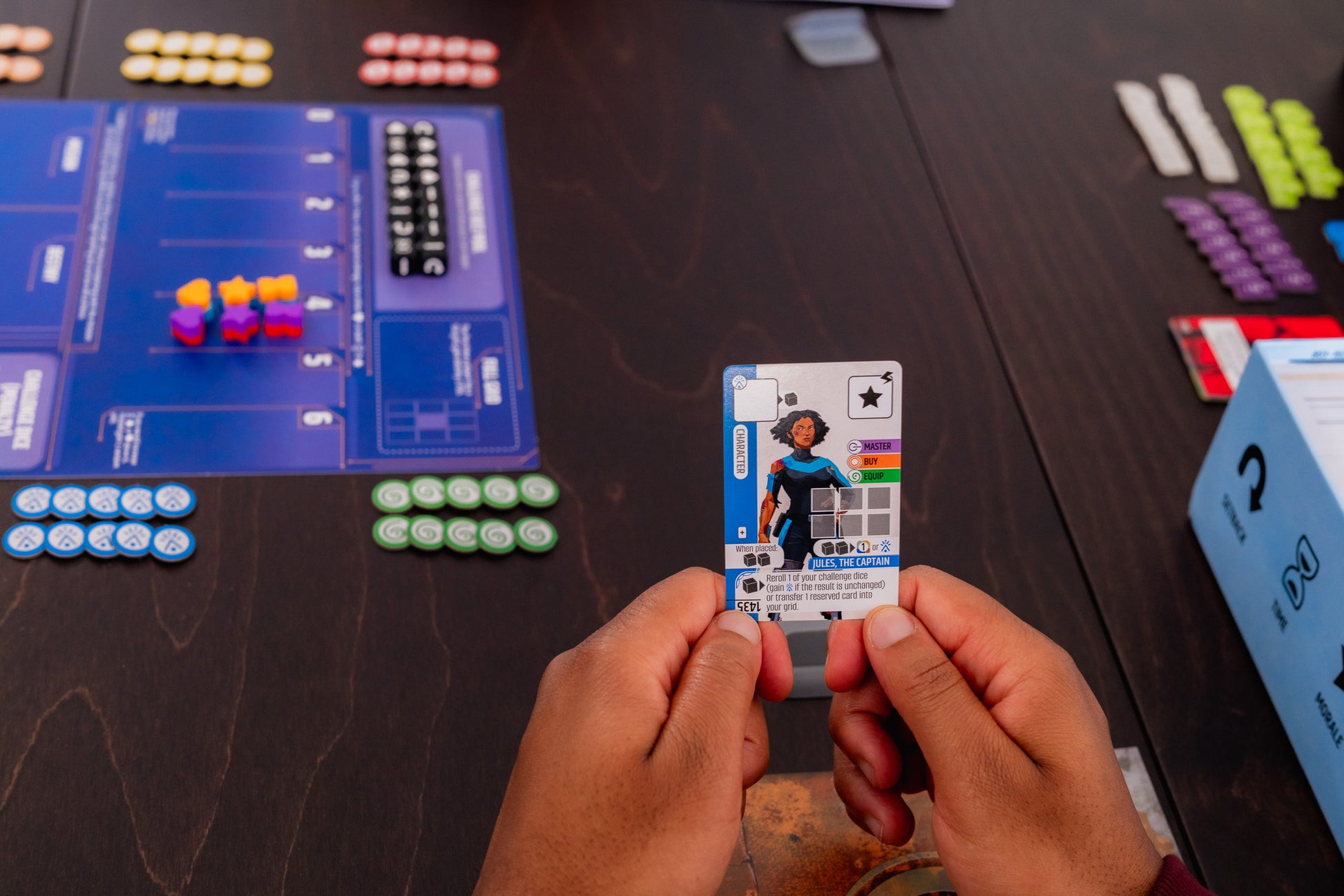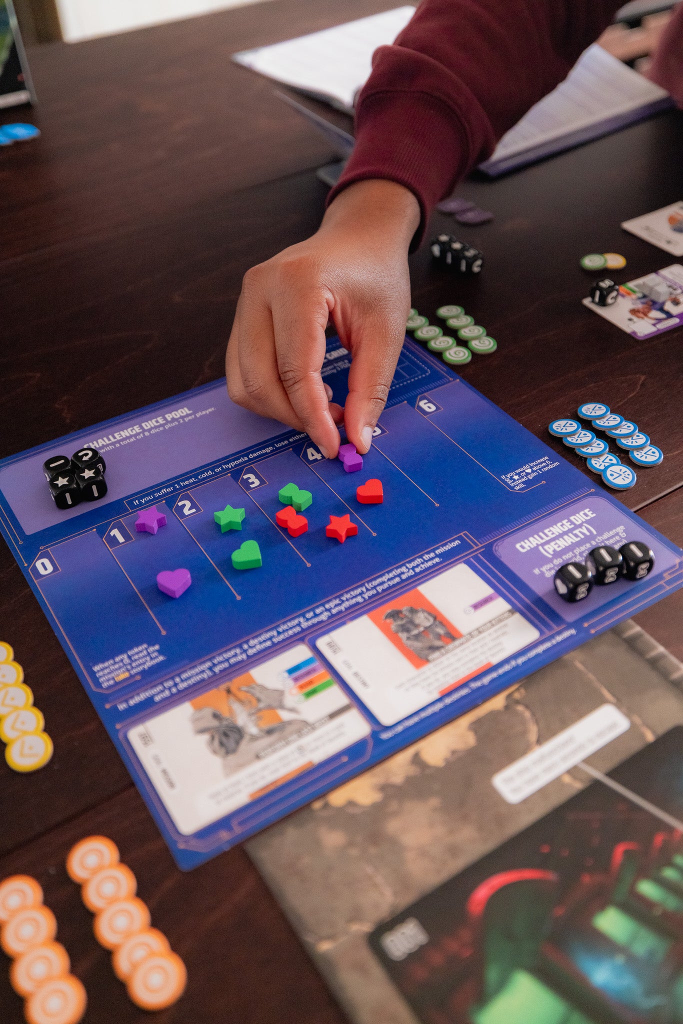 You begin each game of Vantage on an intergalactic vessel heading towards the same uncharted planet with 1 of 21 missions as your primary goal. Each player selects 1 of 6 unique characters, enters a single-person escape pod, and crashes onto 1 of 126 different locations.